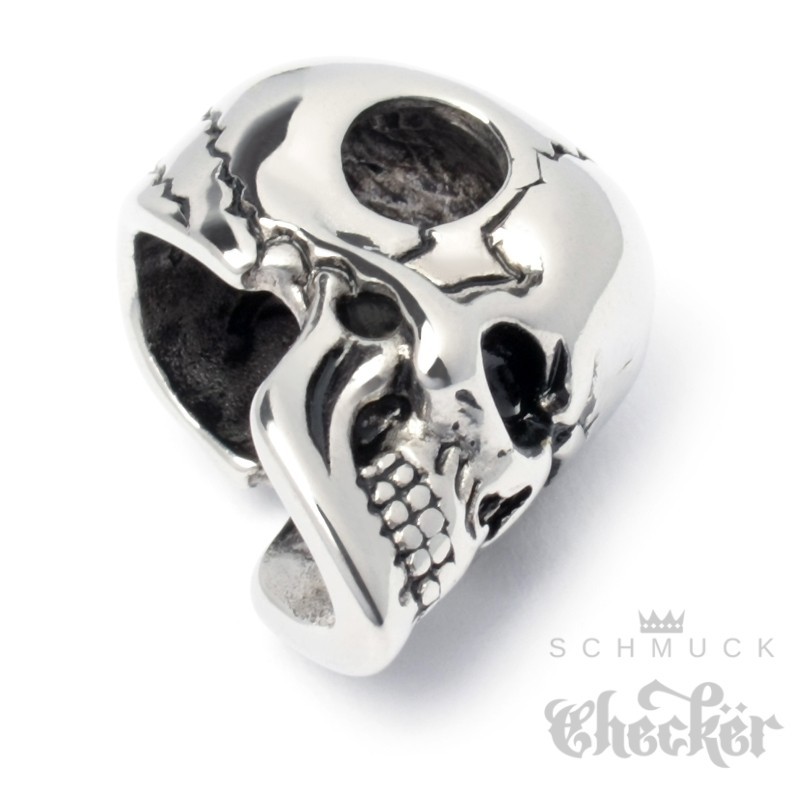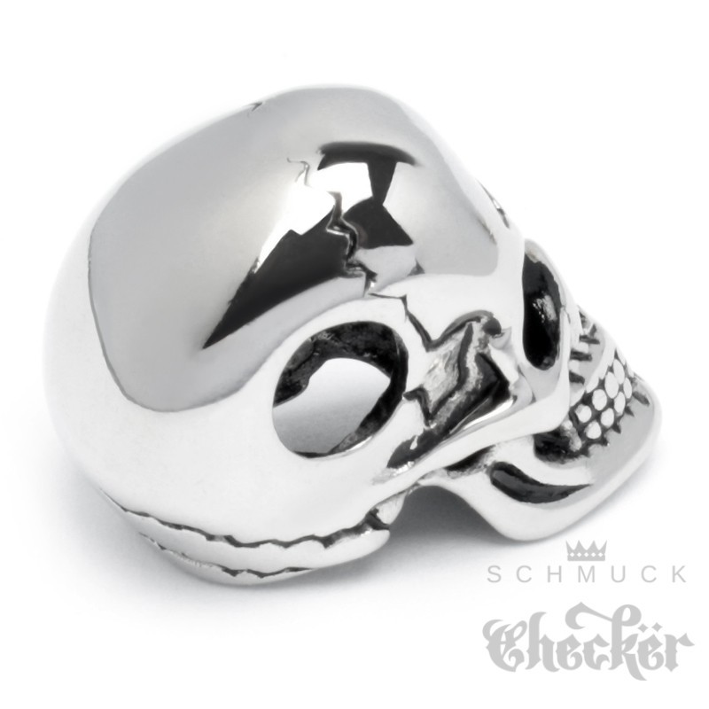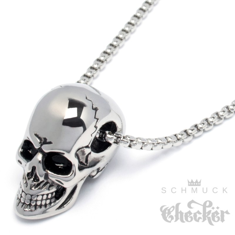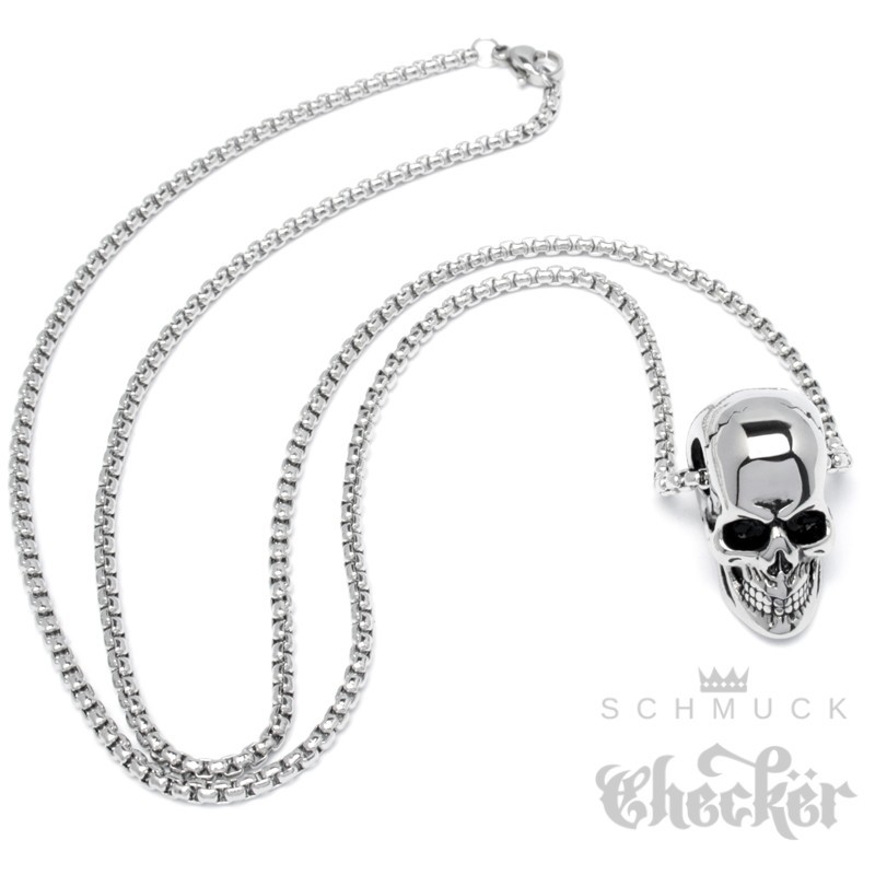 3D Totenkopf-Anhänger silber poliert mit Halskette Edelstahl Skull Bikerschmuck