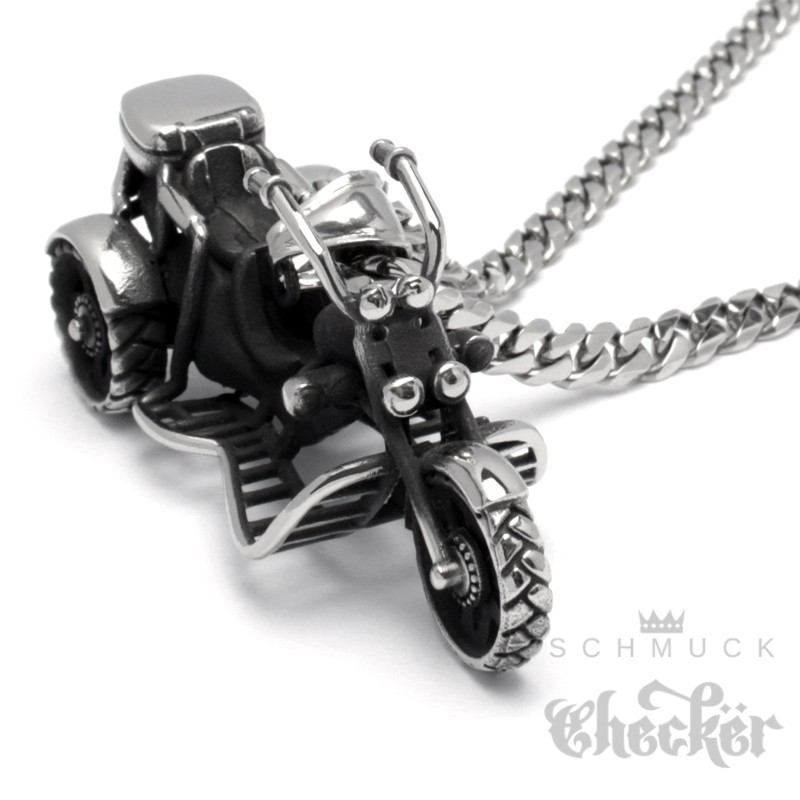 Boom Trike Anhänger aus Edelstahl mit Panzerkette Halskette Bikerschmuck detailliert