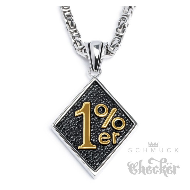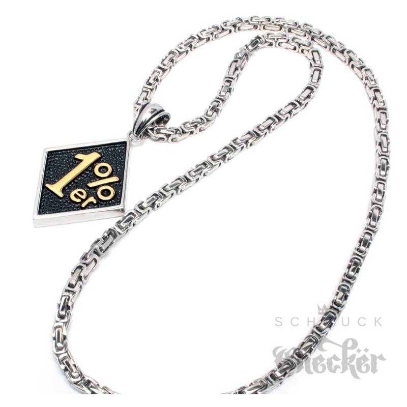 Edelstahl Anhänger 1%er Onepercenter outlaw silber gold + Königskette Gesetzlos Biker