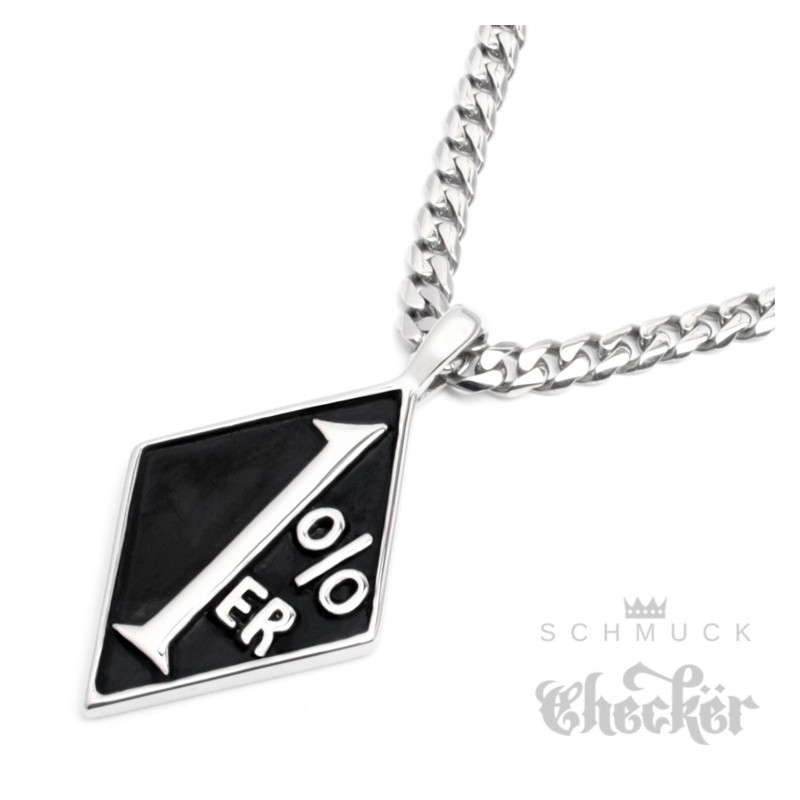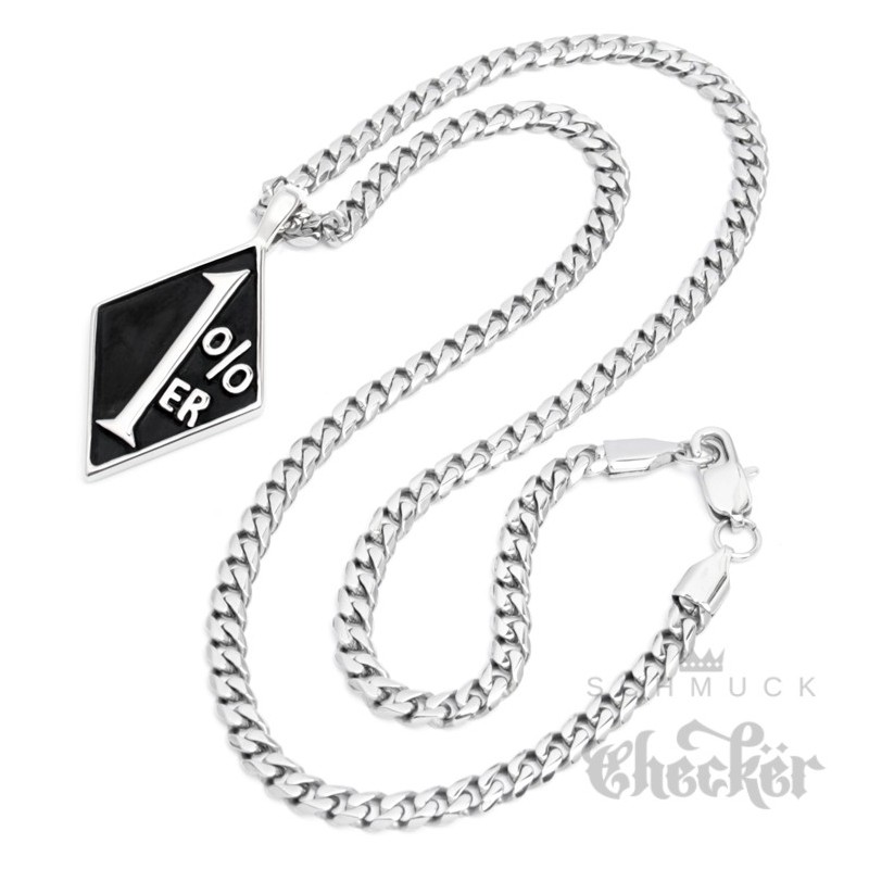 Edelstahl Anhänger 1%er Onepercenter outlaw silber + Panzerkette Gesetzlos Biker