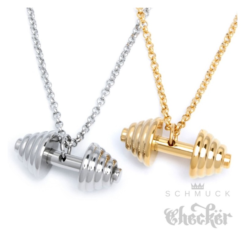 Edelstahl Anhänger Hantel Gewicht Fitness Sport Bodybuilder Schmuck silber + Halskette