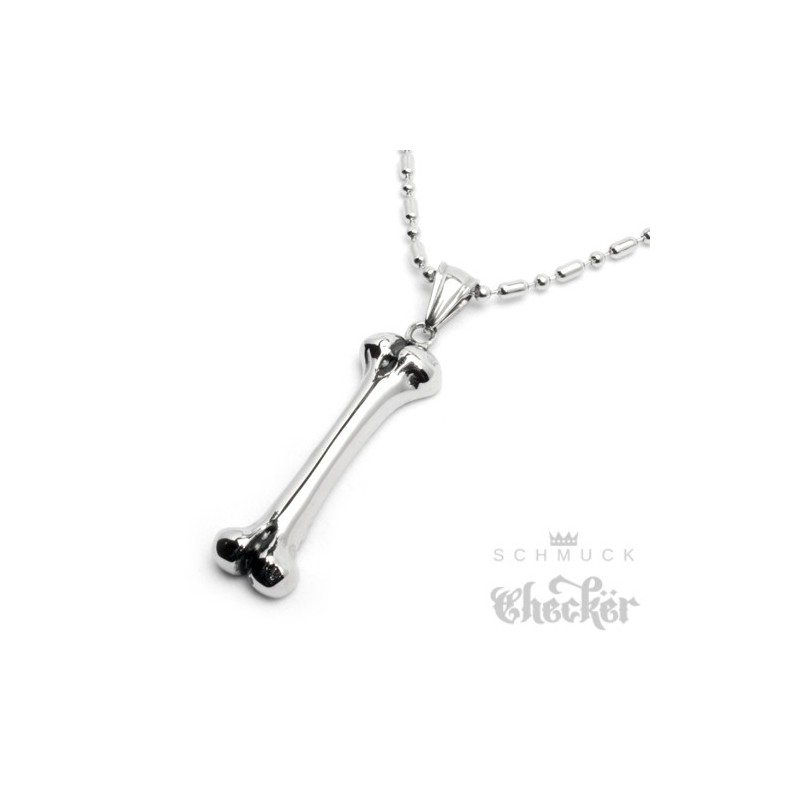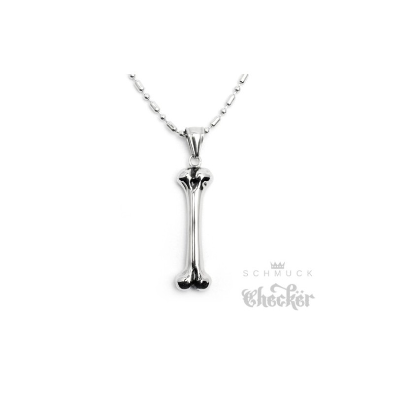 Edelstahl Anhänger Knochen Bone silber massiv Hund Gothic Biker 60cm Halskette