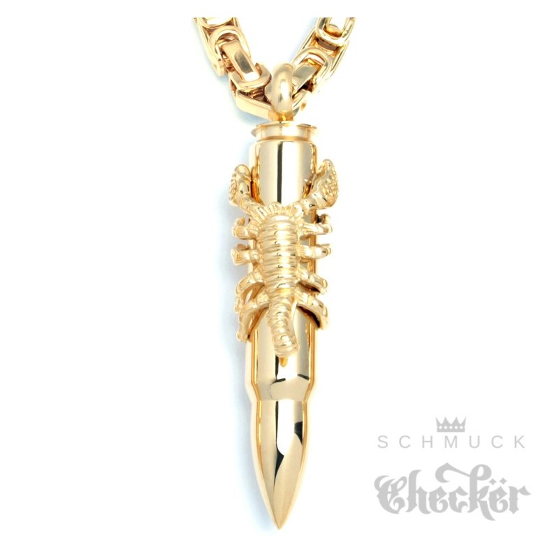 Edelstahl Anhänger Patrone Skorpion Sternzeichen Munition Bullet gold Königskette