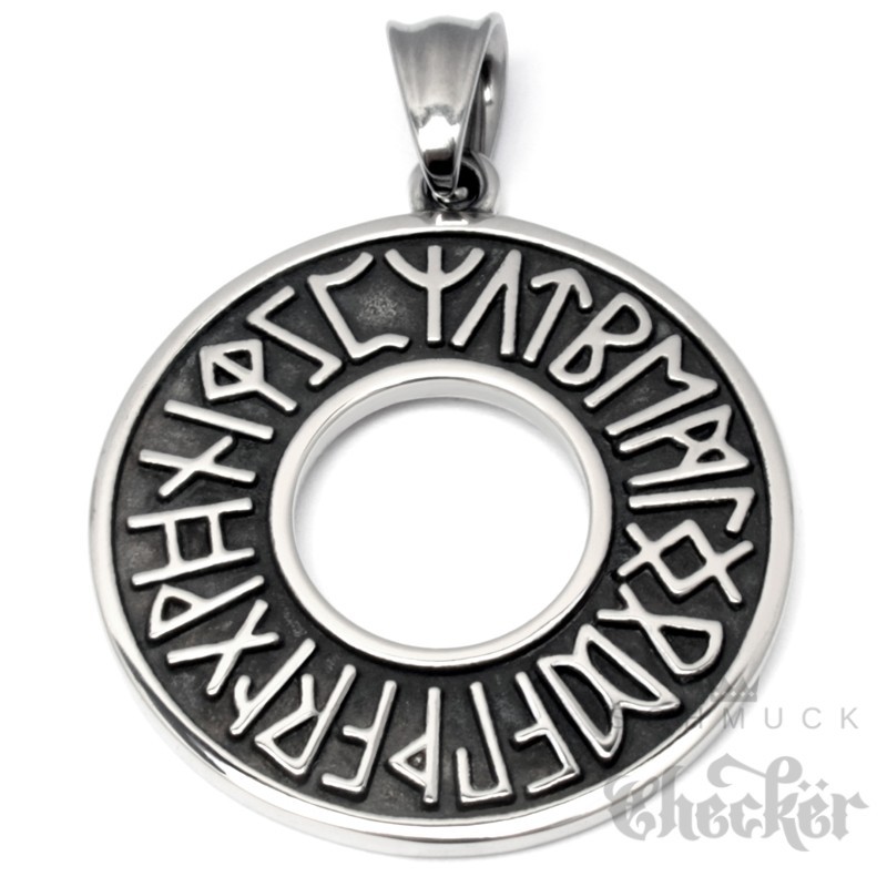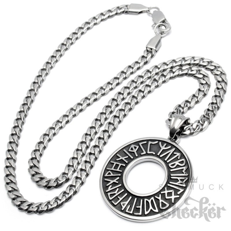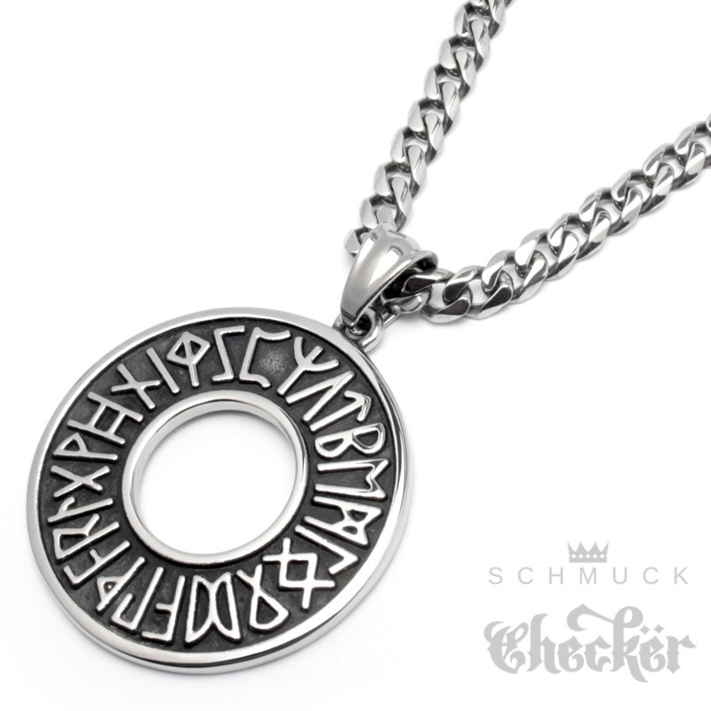 Edelstahl Anhänger Schutz Runen Futhark Wikinger Amulett Herren Schmuck Halskette