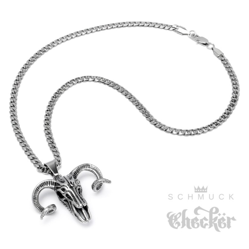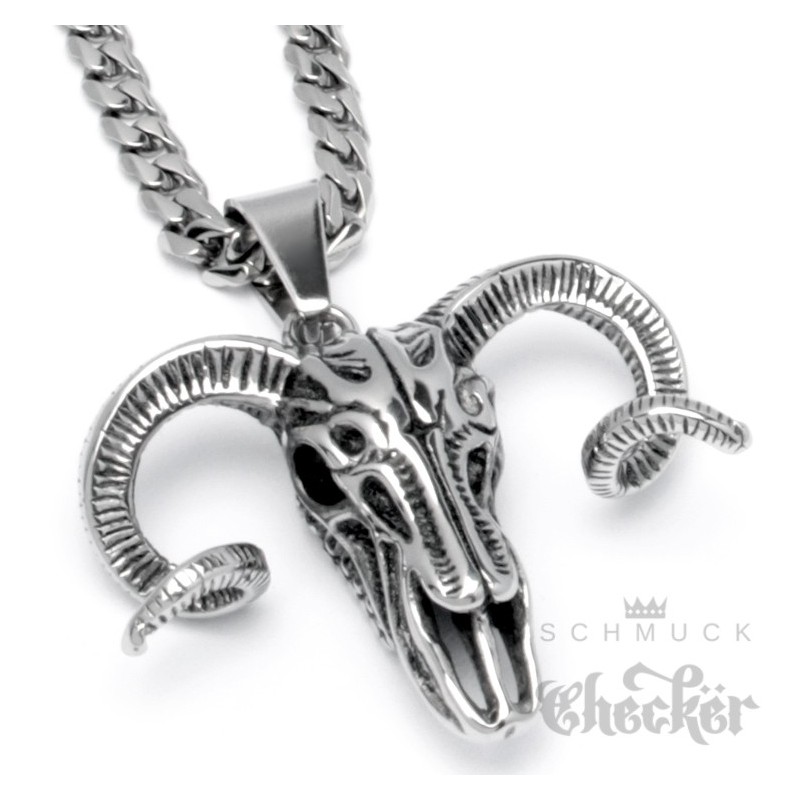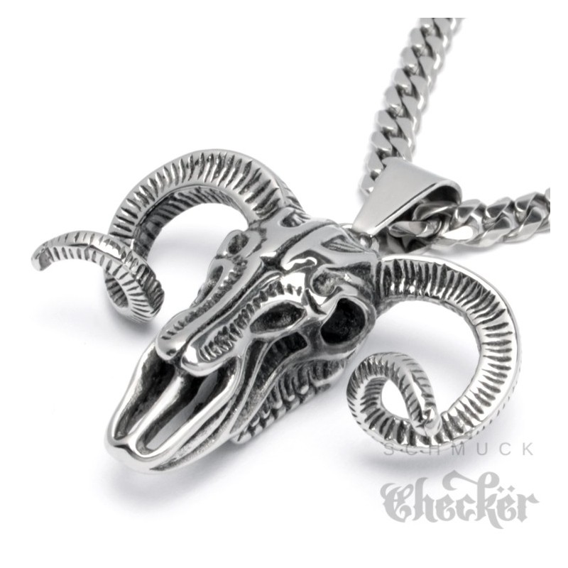 Edelstahl Anhänger Widder Schädel detailliert Totenkopf Sternzeichen 60cm Kette