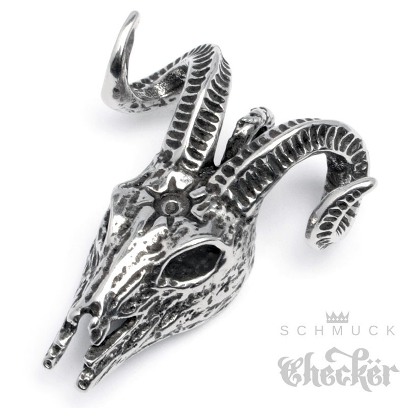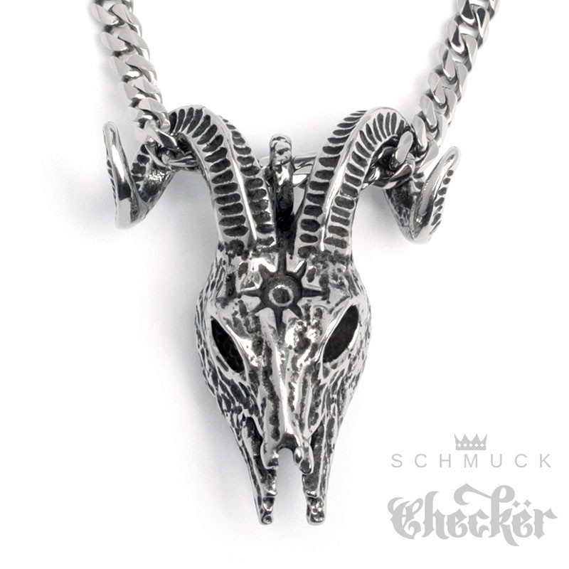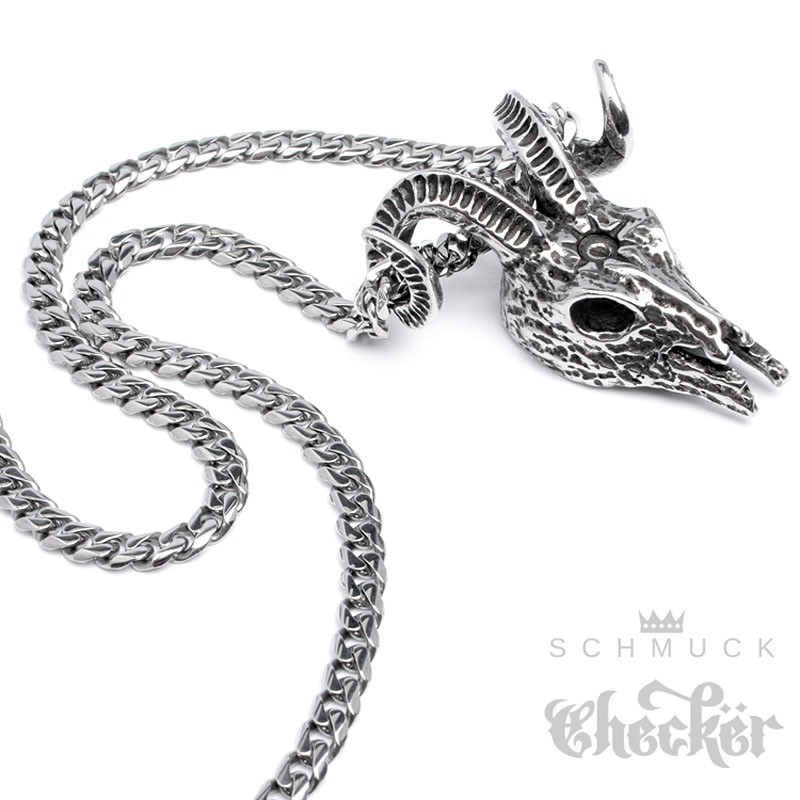 Edelstahl Anhänger Widder Schädel detailliert Totenkopf Sternzeichen 60cm Panzerkette