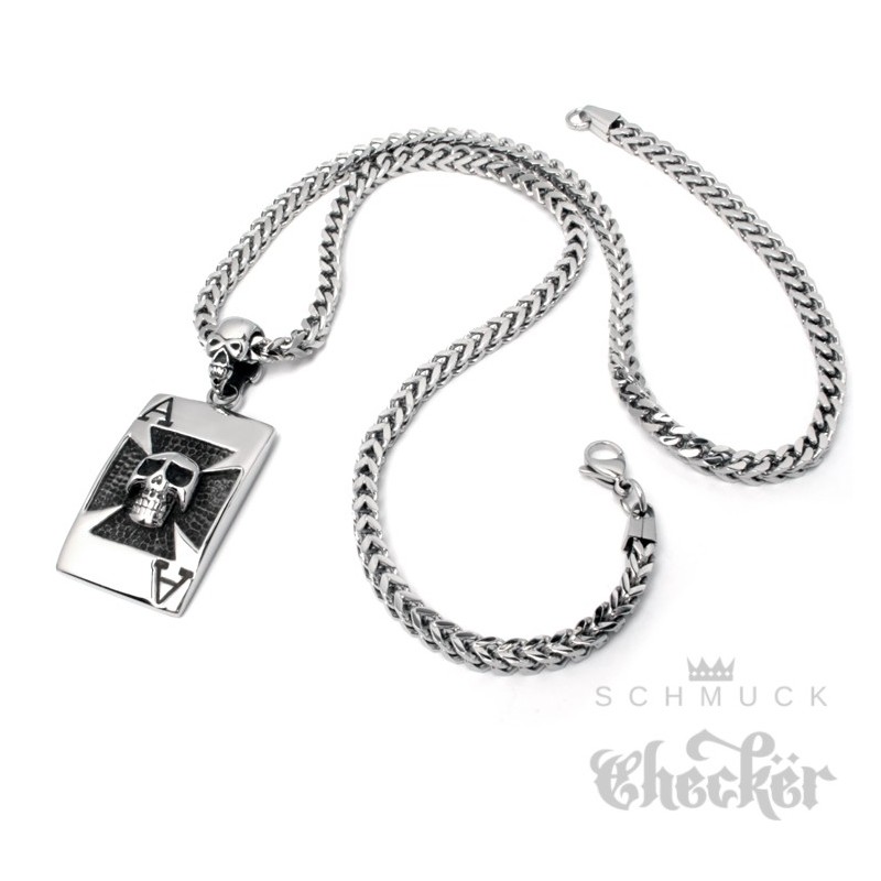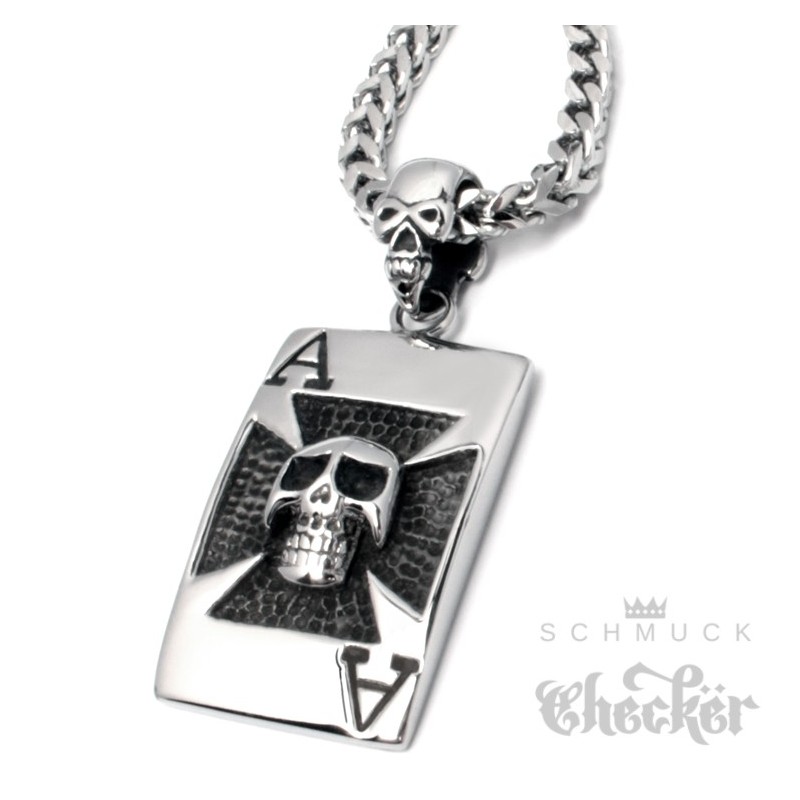 Edelstahl Biker Anhänger Karte Ass Ace Eisernes Kreuz Totenkopf massiv + Kette