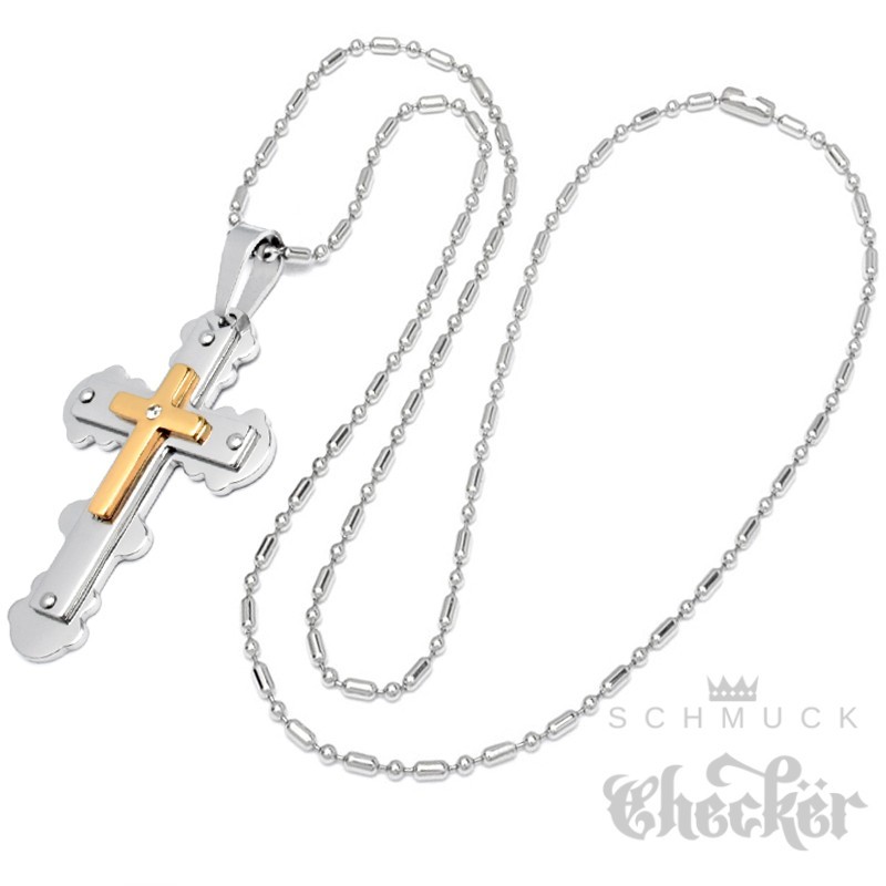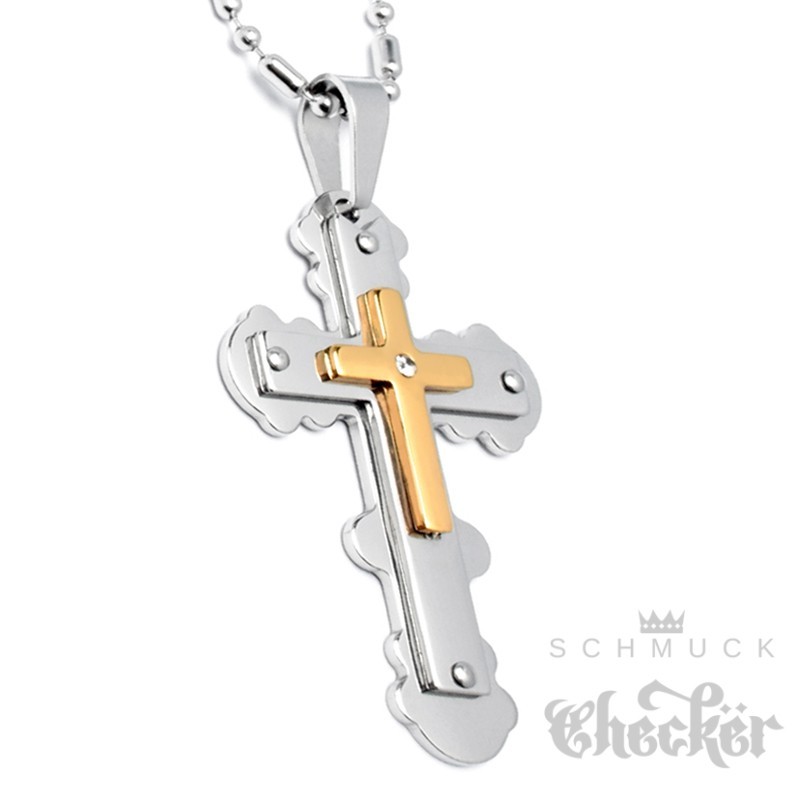 Großes Kreuz mit Zirkon silber gold poliert Edelstahl Anhänger mit Halskette Herren