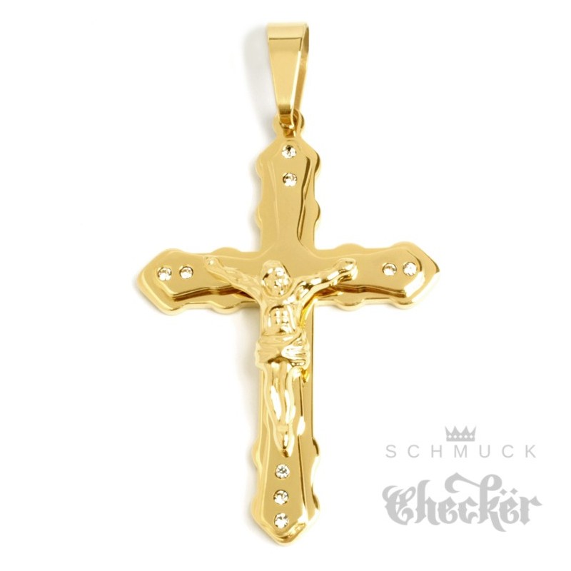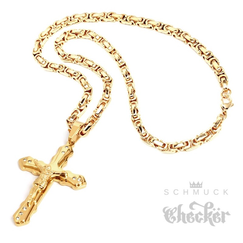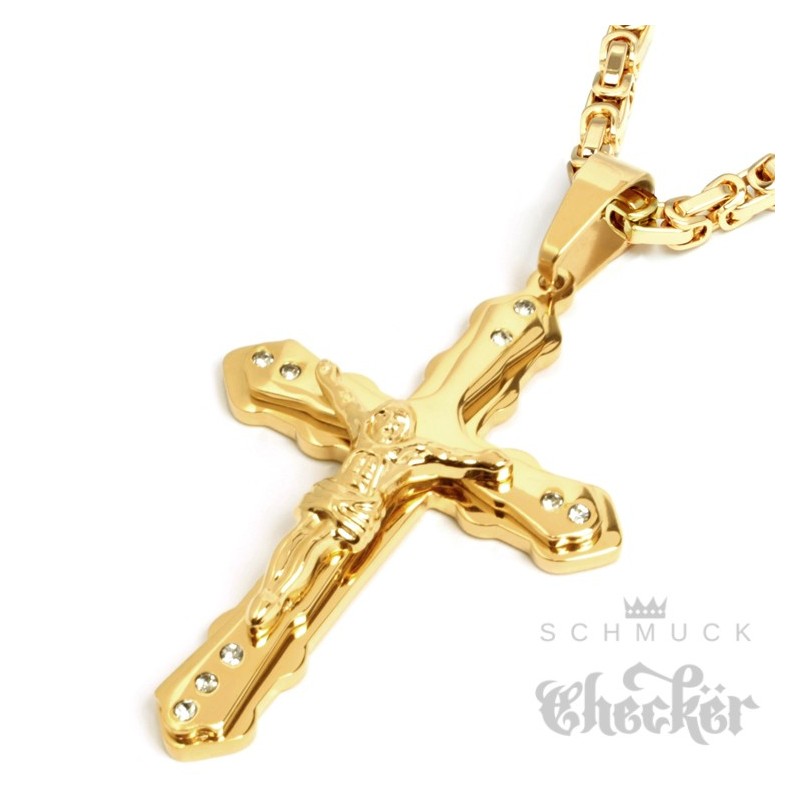 Edelstahl Kreuz Anhänger 18k vergoldet gold groß Jesus Herren Halskette Königskette