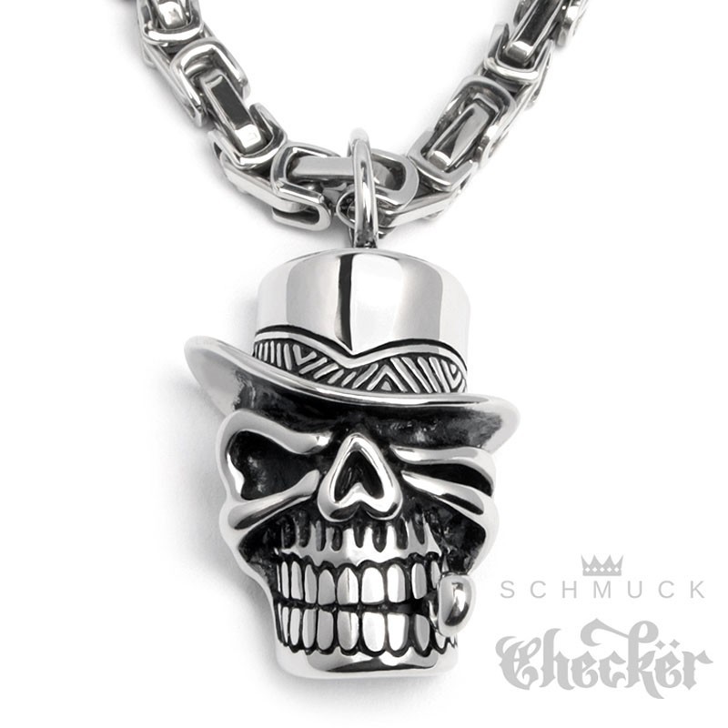 Edelstahl ketten-Anhänger Totenkopf Zylinder Pfeife Steampunk + 60cm Königskette