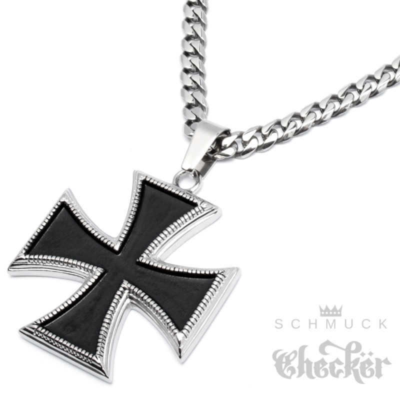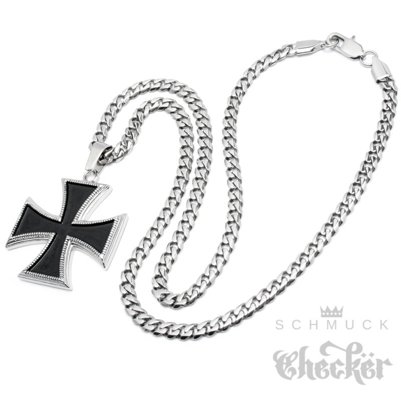 Eisernes Kreuz Anhänger aus Edelstahl silber schwarz Orden Panzerkette Halskette