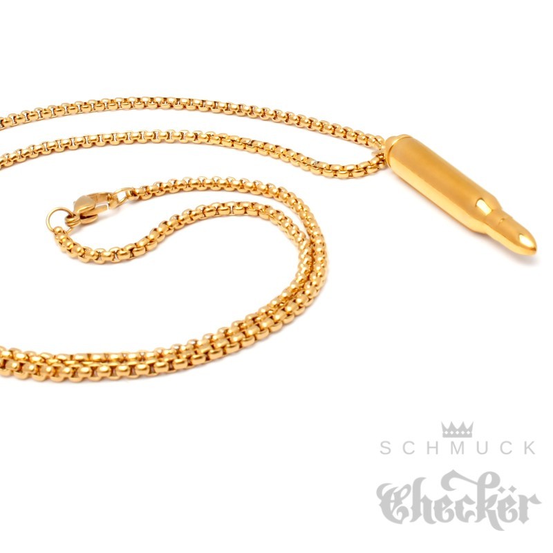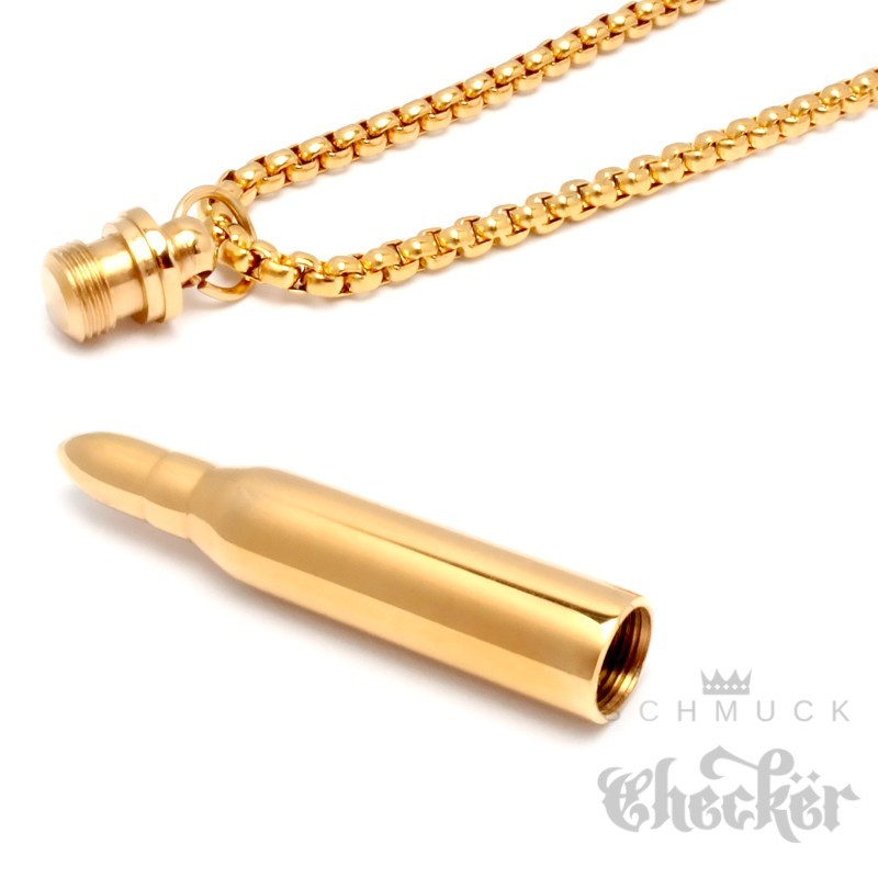 Goldener Munitions-Anhänger kleine Patrone mit Halskette aus Edelstahl Notkapsel geheimfach