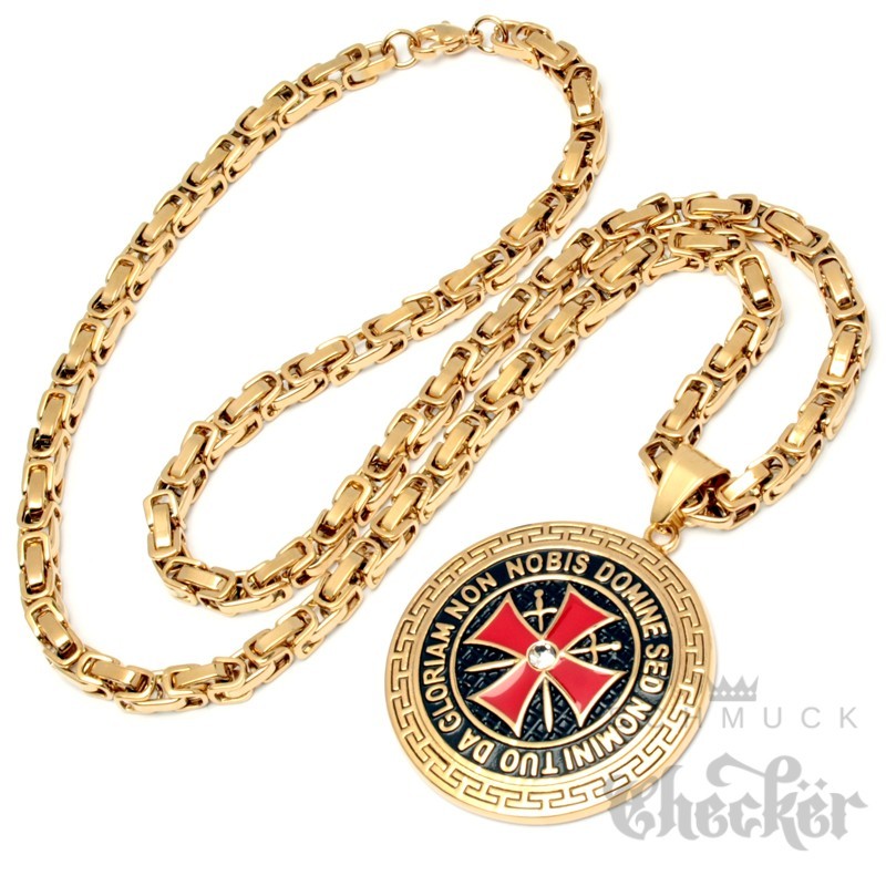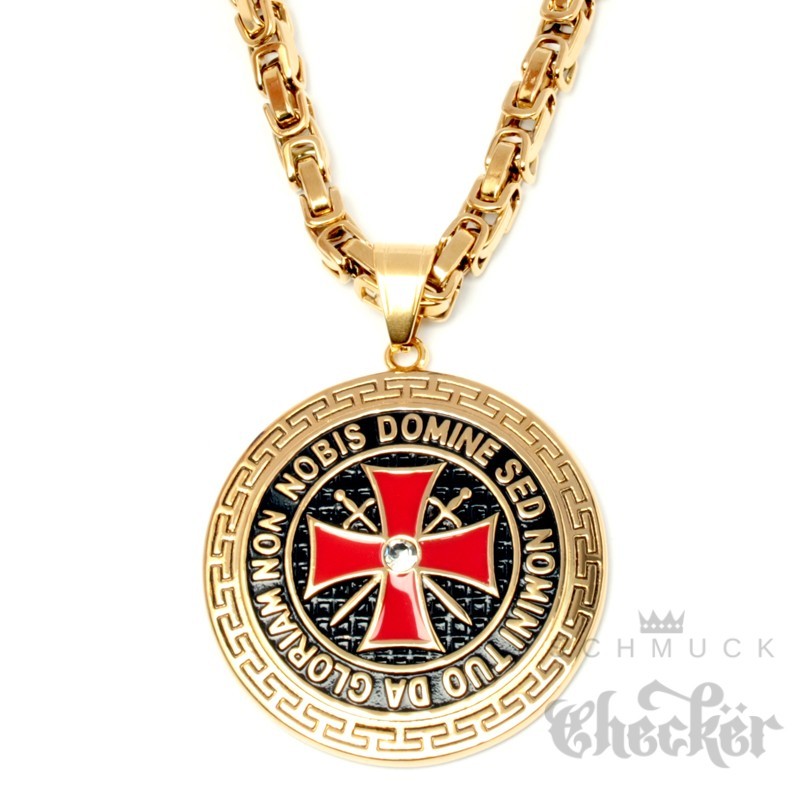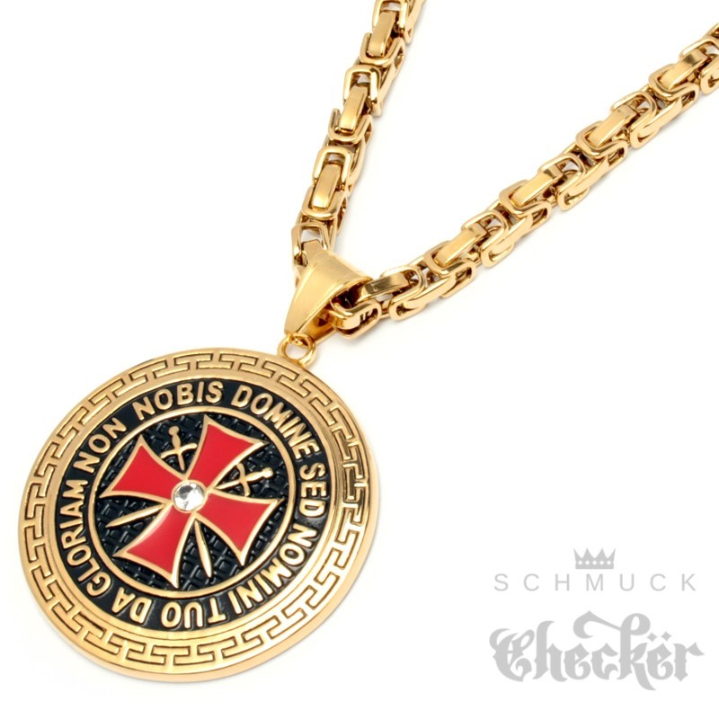 Goldenes Templer-Medaillon aus Edelstahl 18k vergoldet mit Königskette Tempelritter