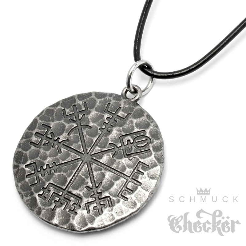 Diese hochwertige Halskette mit grauem Runen-Stein / Vegvisir-Anhänger aus Edelstahl ist das perfekte Accessoire für alle Wikinger- und nordischen Heidentum-Fans. Das Lederband ist robust und hat eine Länge von 1 Meter (100 cm). Der Bindeverschluss sorgt für Flexibilität. Der Anhänger hat eine runde Form und ist mit dem Schutzamulett Vegvisir verziert. Das Schmuckstück eignet sich für verschiedene Anlässe wie Geburtstage, Festivals, spirituelle Treffen, Jahrestage und vieles mehr. Es ist ein Glücksbringer und Ausdruck von Bewusstsein und Glauben.