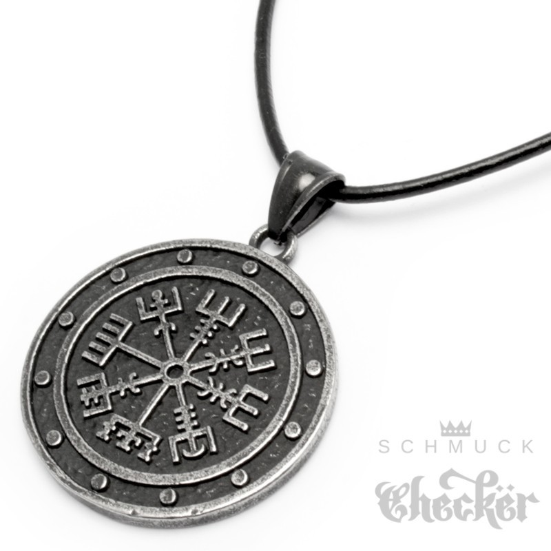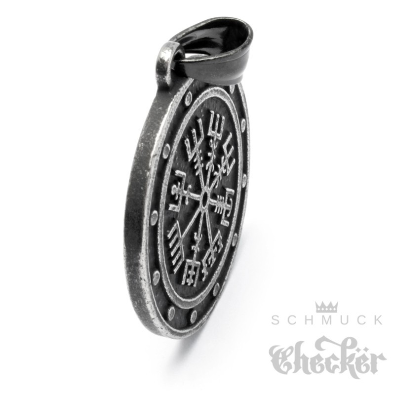 Grauer Vegvisir Runen-Kompass aus Edelstahl Gun Metal Style rustikal Wikingerschmuck