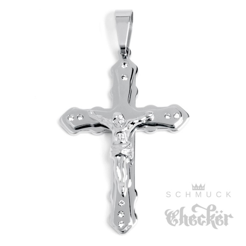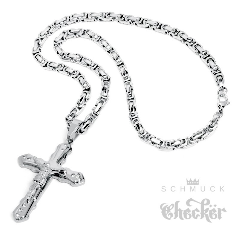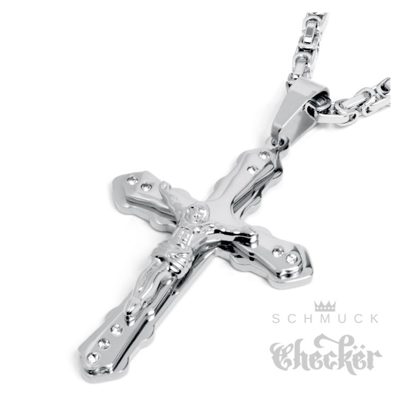 Großer Kreuz Anhänger aus Edelstahl mit Jesus silber XL Herren Halskette Königskette