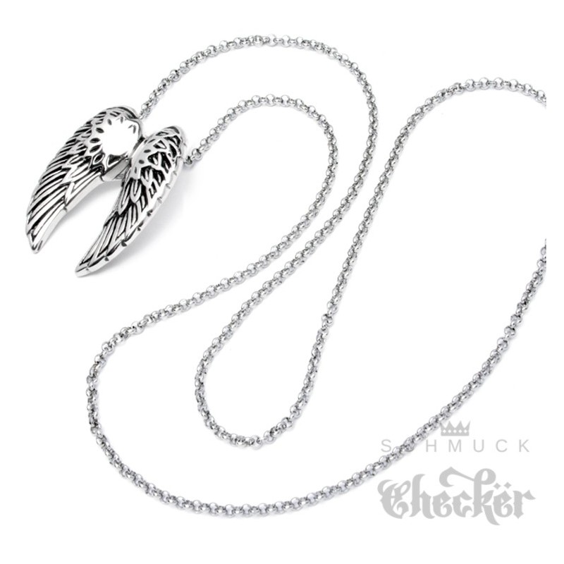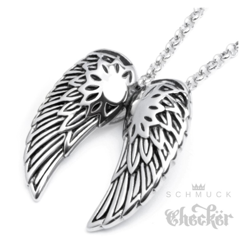 Hochwertiger Edelstahl Anhänger silber zwei Flügel Engel Wings + Halskette