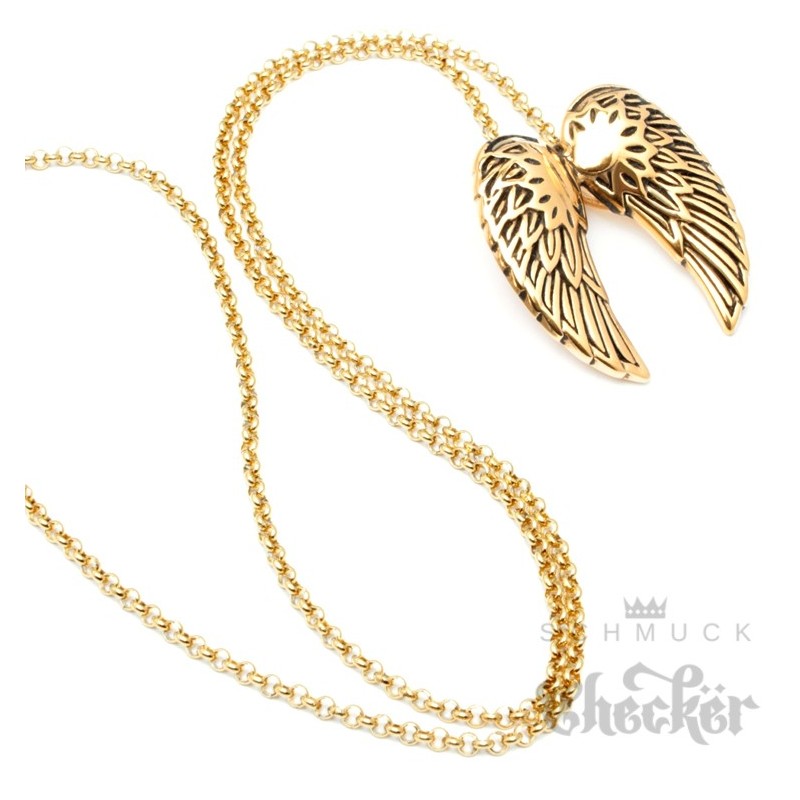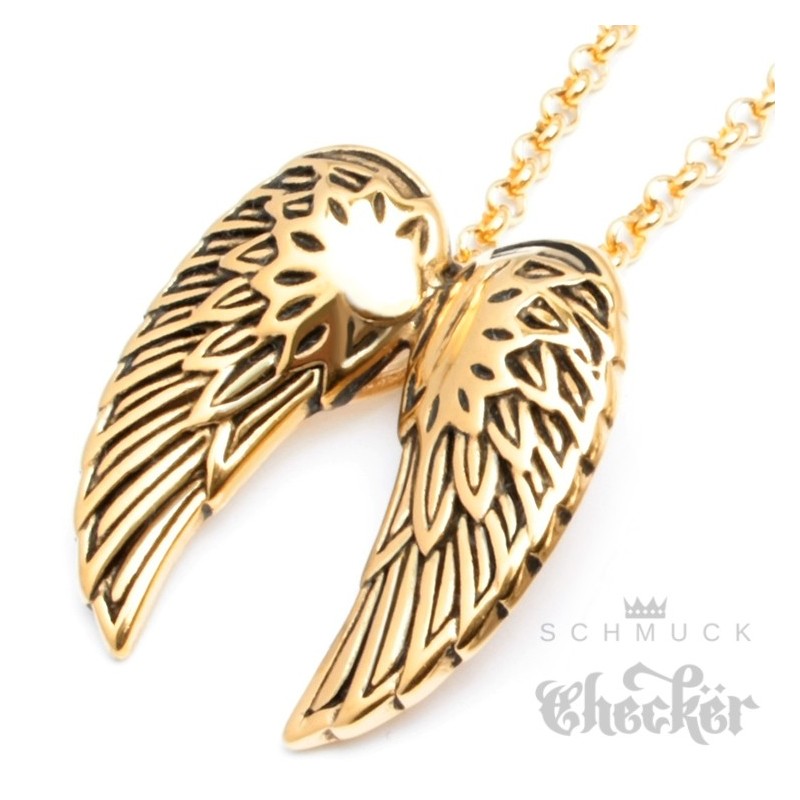 Hochwertiger Edelstahl Anhänger gold zwei Flügel Engel Wings + Halskette