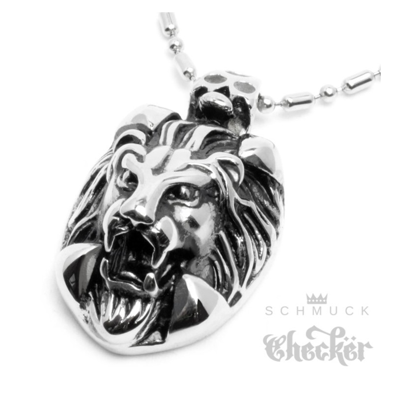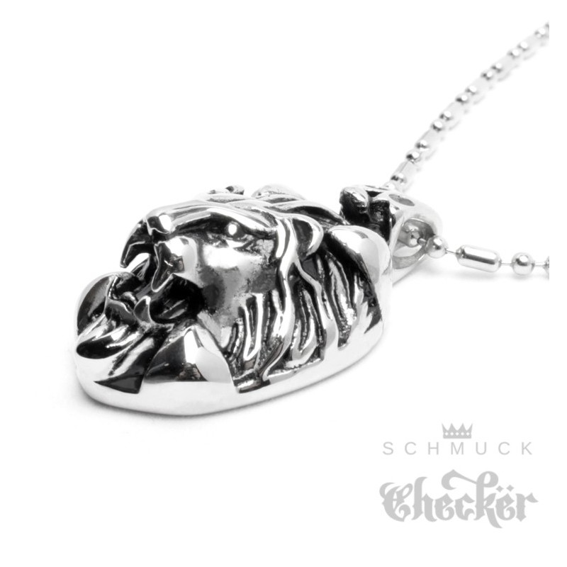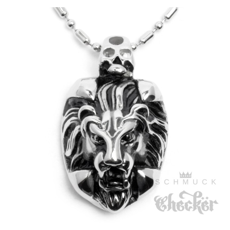 Hochwertiger Edelstahl Herren Anhänger silber Löwe Lion Totenkopf + Kette Biker