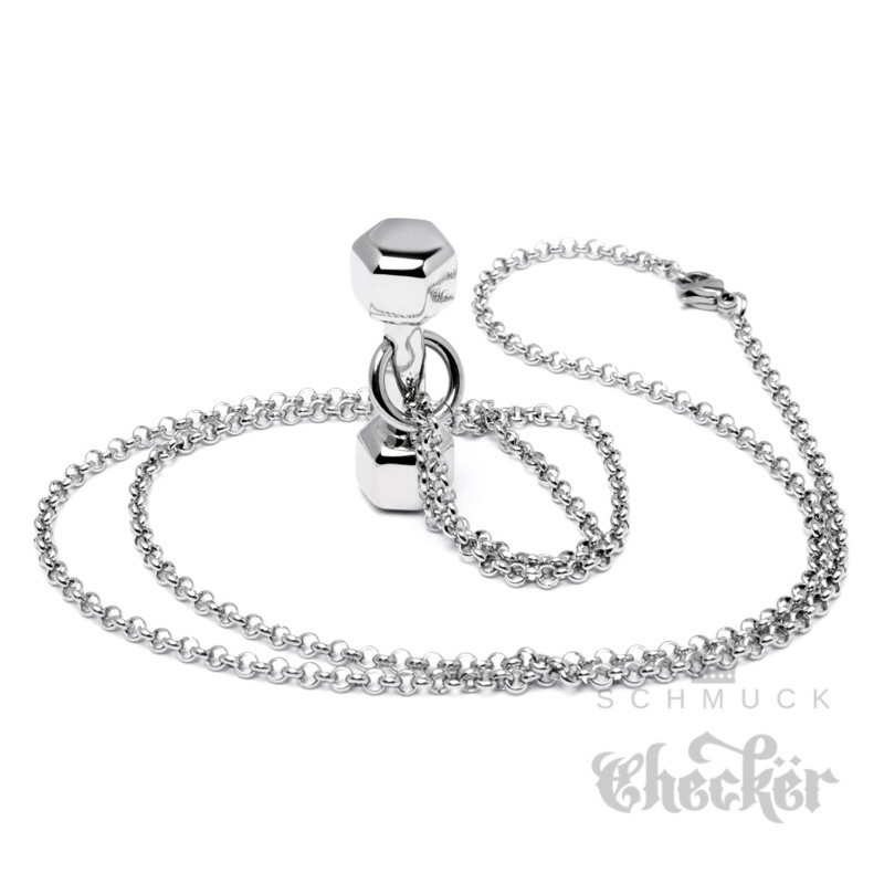 Diese Sechskanthantel kennt garantiert jeder der mal in einem Fitnessstudio war. Jetzt gibt es sie als massiven Kettenanhänger aus Edelstahl mit passender Halskette zu kaufen. Das ist Schmuck für Männer und Frauen und der perfekte Trainingspartner. Das macht es zu einer guten Geschenkidee für alle die Sport und Fitness lieben. Also am besten jetzt bestellen und sofort mit dem Training los legen.