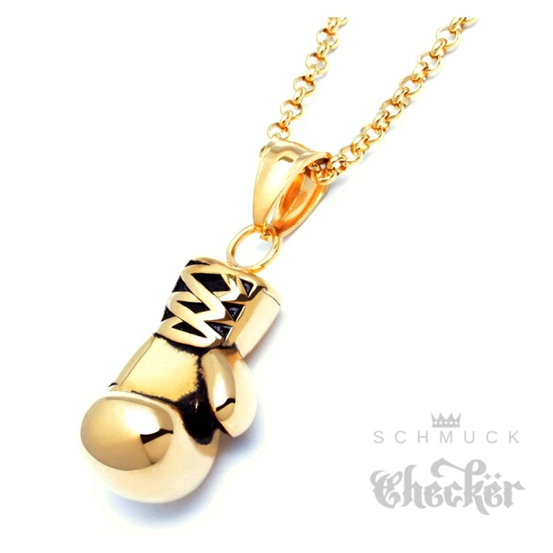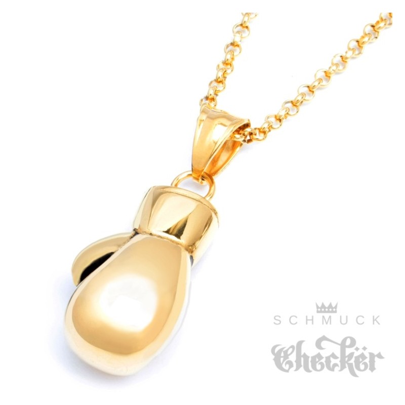 Kleiner Edelstahl Anhänger Boxhandschuh Kampfsport gold + Halskette