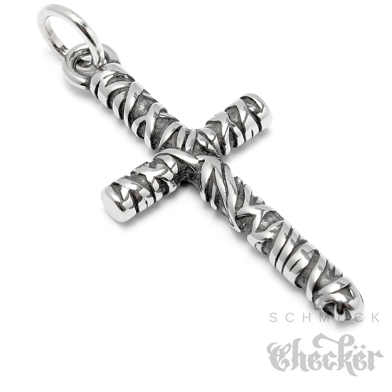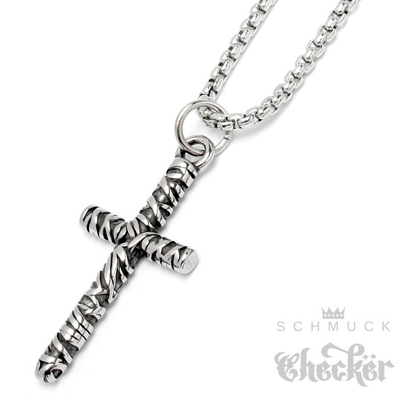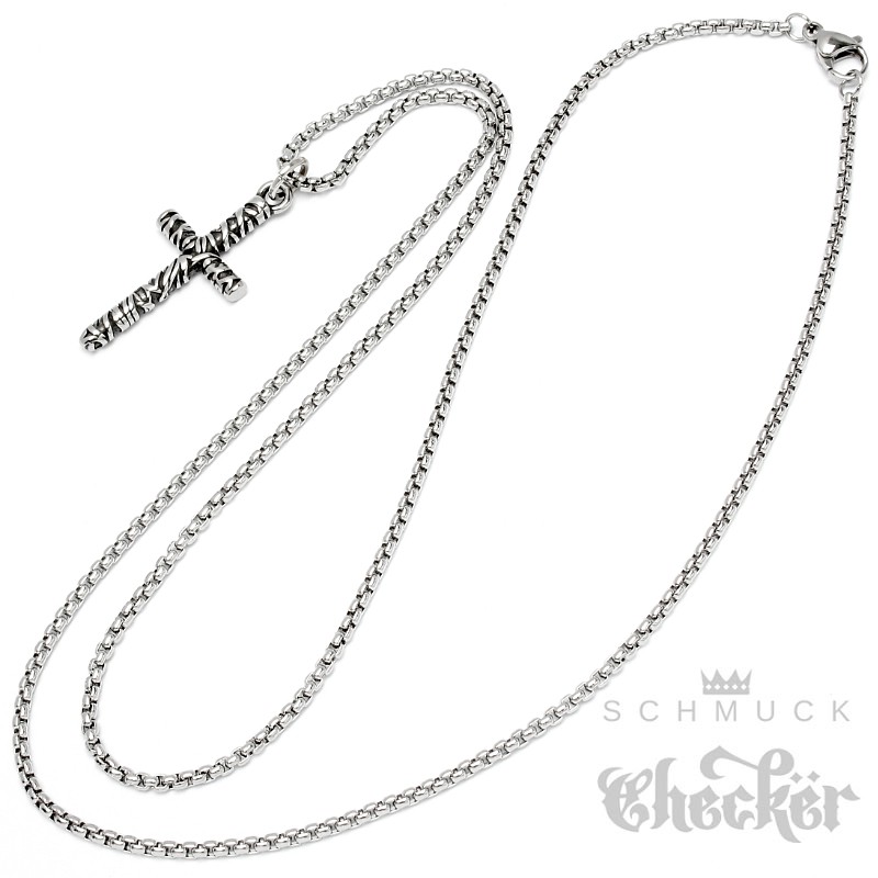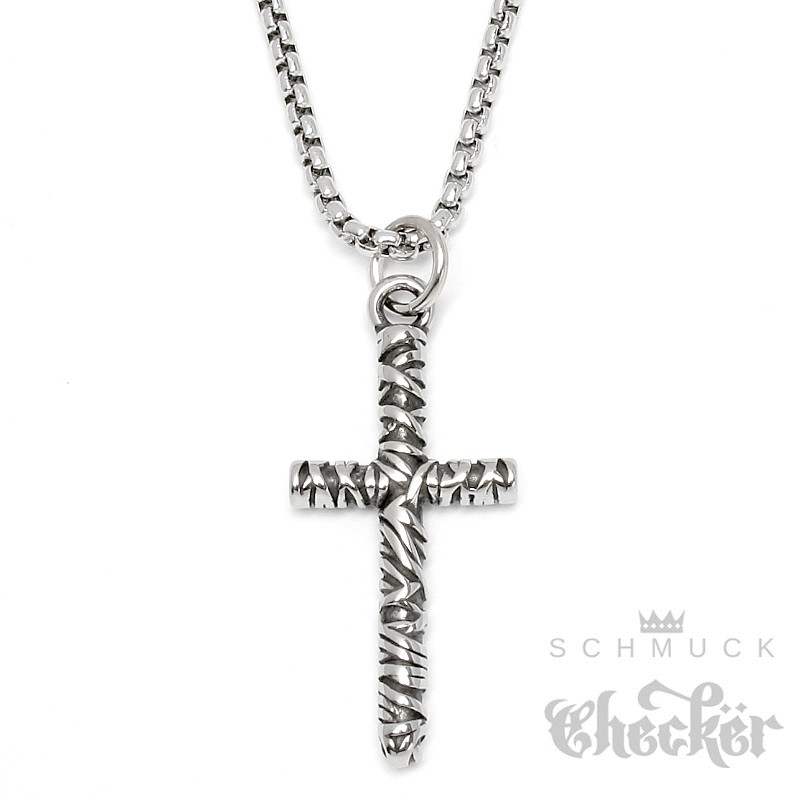 Kleiner Kreuzanhänger aus Edelstahl silber detailliert verziert mit Halskette