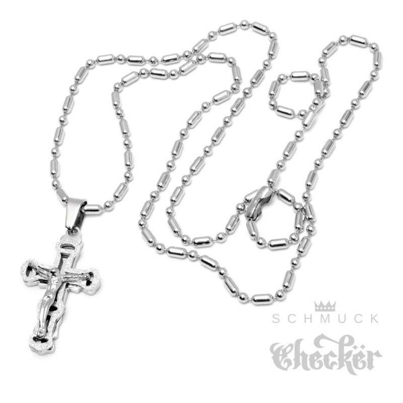 Kleines diamantiertes Kreuz mit Jesus Anhänger aus Edelstahl 60cm Halskette