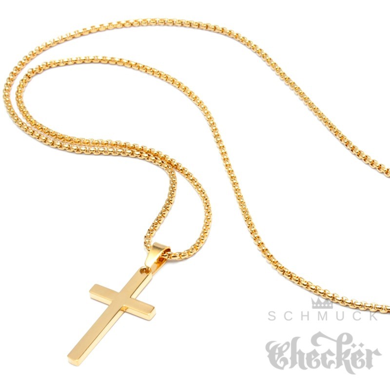 Kleines Kreuz aus Edelstahl gold schlicht Anhänger Herren Schmuck + Halskette