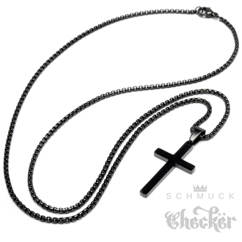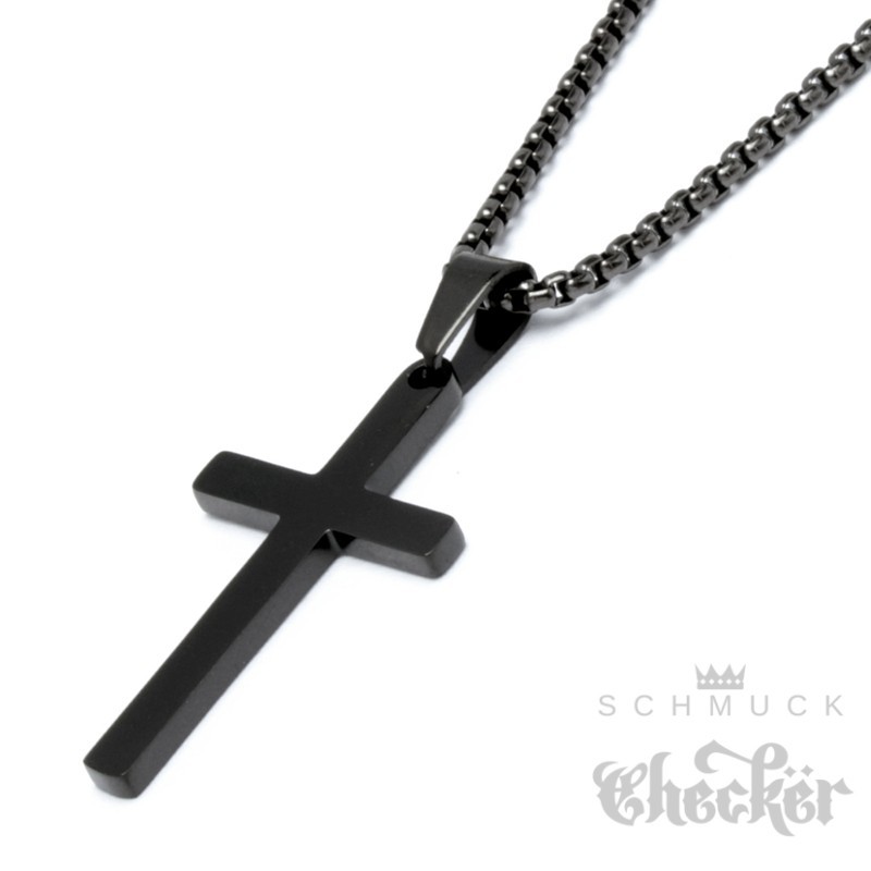 Kleines Kreuz aus Edelstahl schwarz schlicht Anhänger Herren Schmuck + Halskette