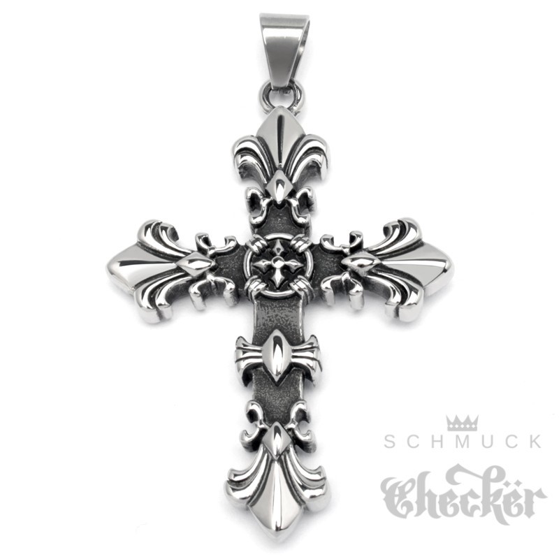 Lilien Kreuz Anhänger aus Edelstahl 316L silber Fleur de Lis Königskette Halskette