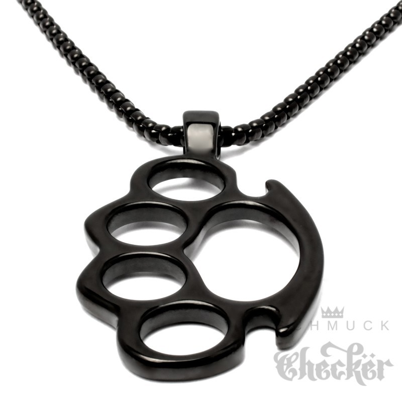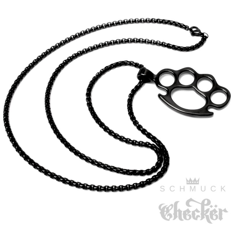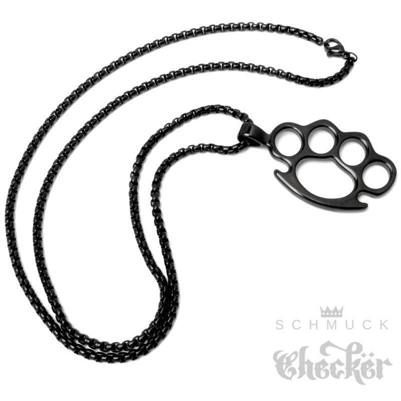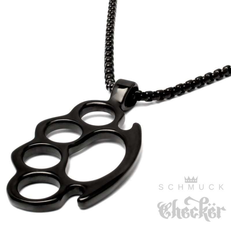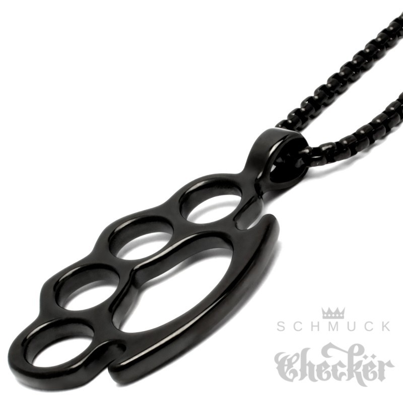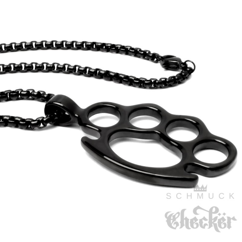Massiver Schlagring Anhänger aus Edelstahl schwarz Halskette Männerschmuck Geschenk