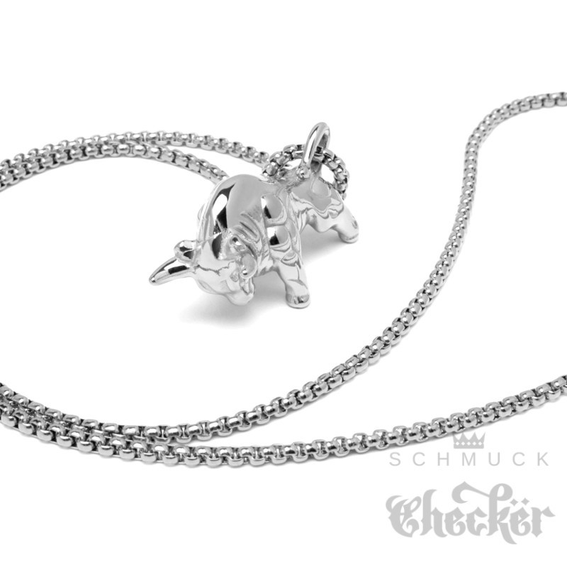 Massiver Stier-Anhänger 3D mit Halskette Edelstahl Bullish Sternzeichen Männer Geschenk