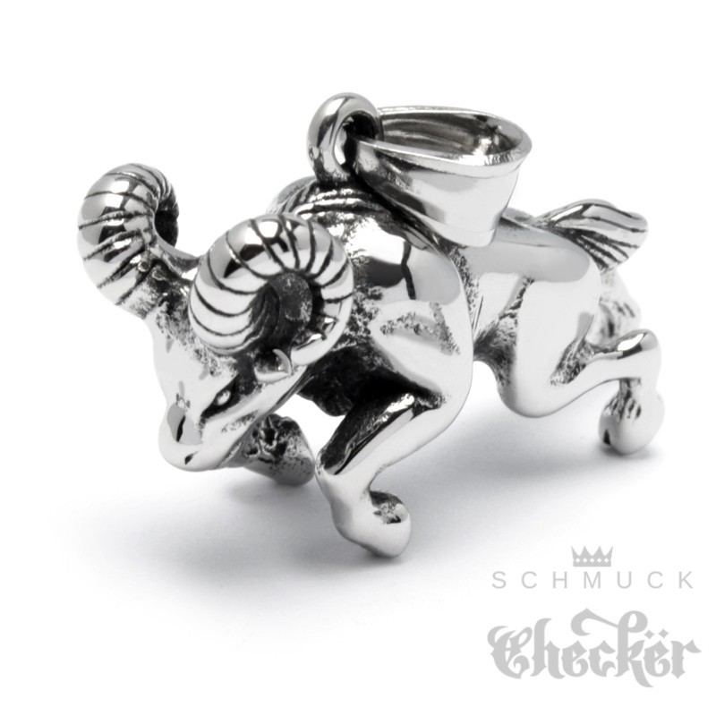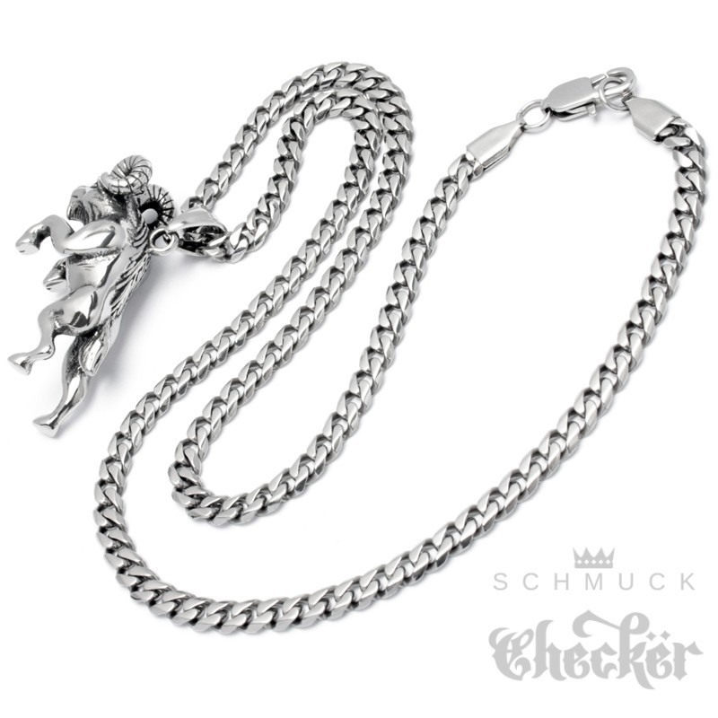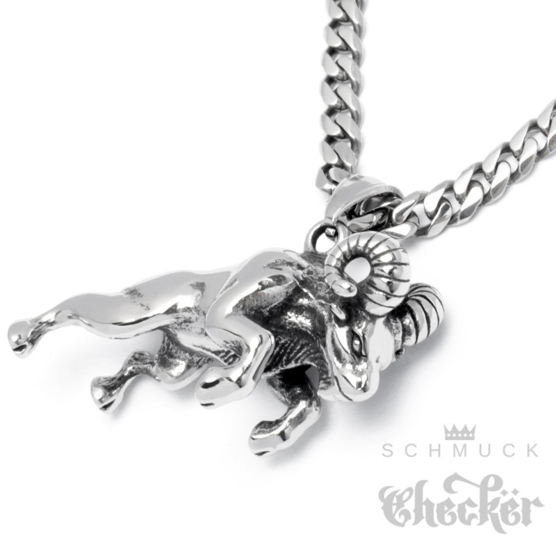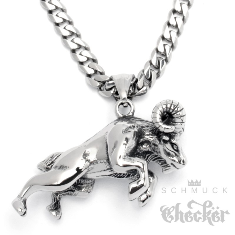 Massiver Widder aus Edelstahl mit Panzerkette Halskette Sternzeichen Anhänger silber
