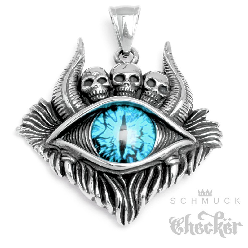 Monster Evil Eye mit Hörnern Totenköpfen blaues böses Auge Edelstahl Schutzamulett