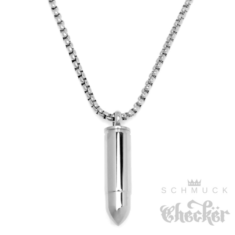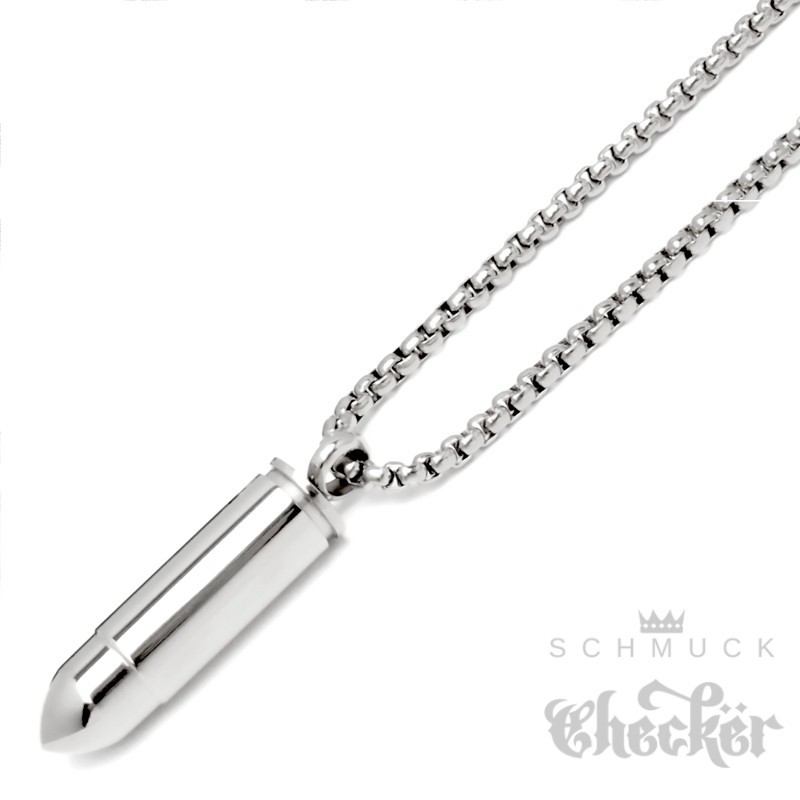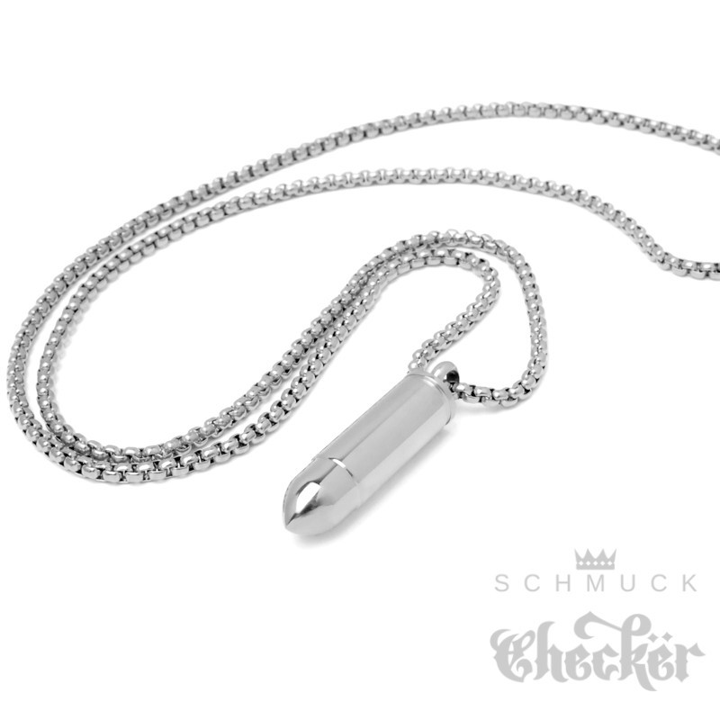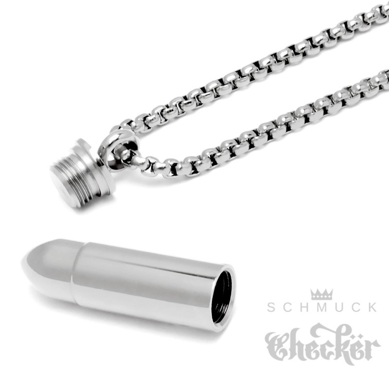 Kleine Munition Patrone Edelstahl Anhänger Notkapsel geheimfach Bullet Halskette silber