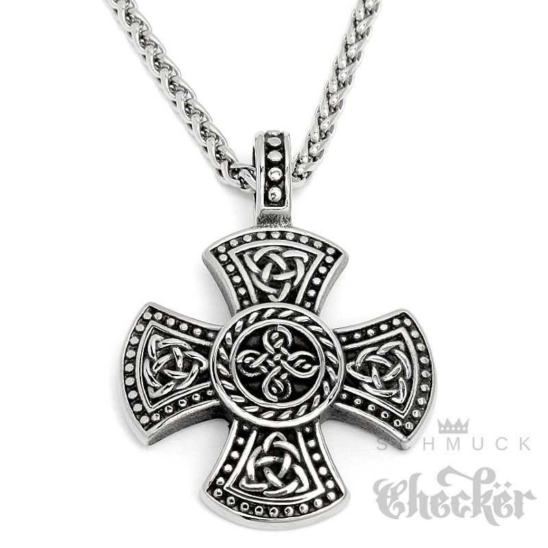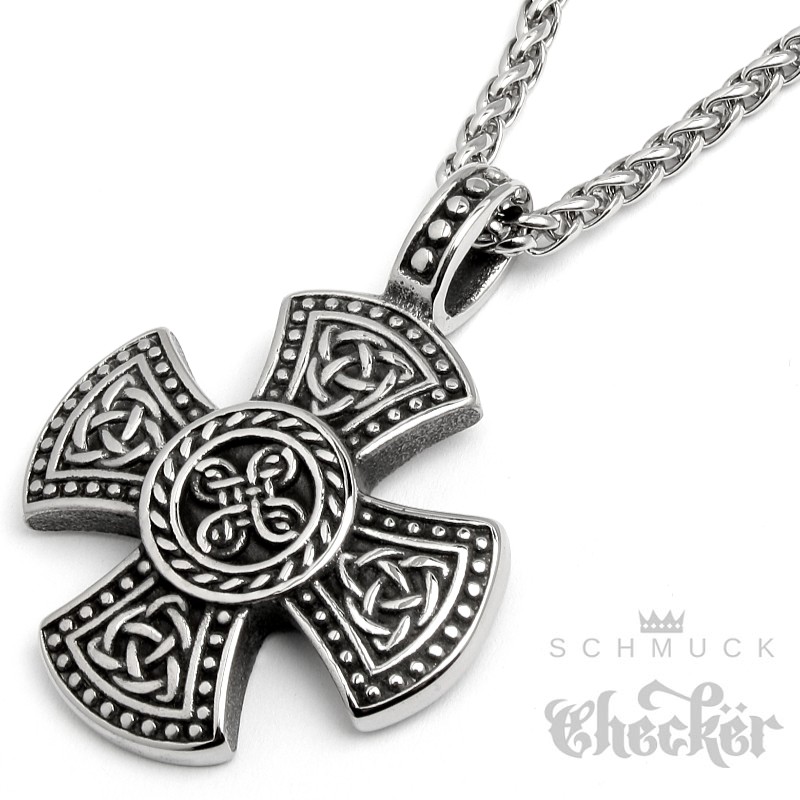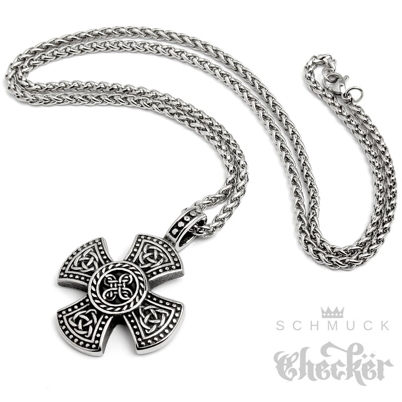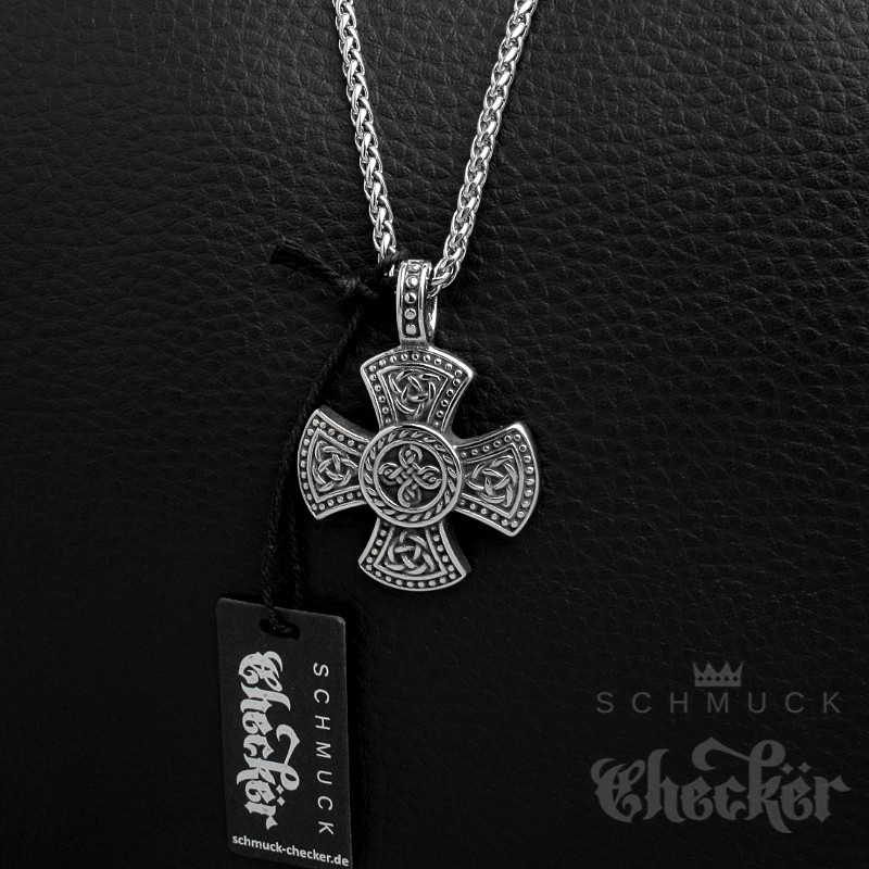 Ritter-Kreuz mit keltischen Knoten verziert massiver Edelstahl Kettenanhänger