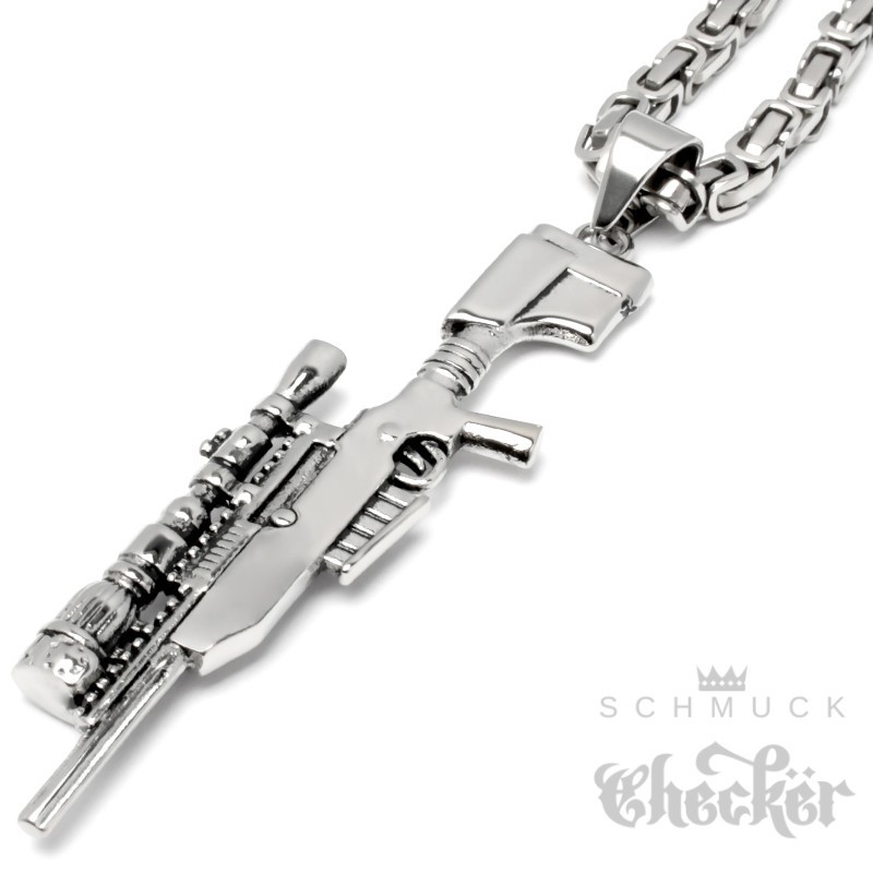 Scharfschützen Gewehr Anhänger aus Edelstahl Jagdgewehr mit Zielvorrichtung Kette