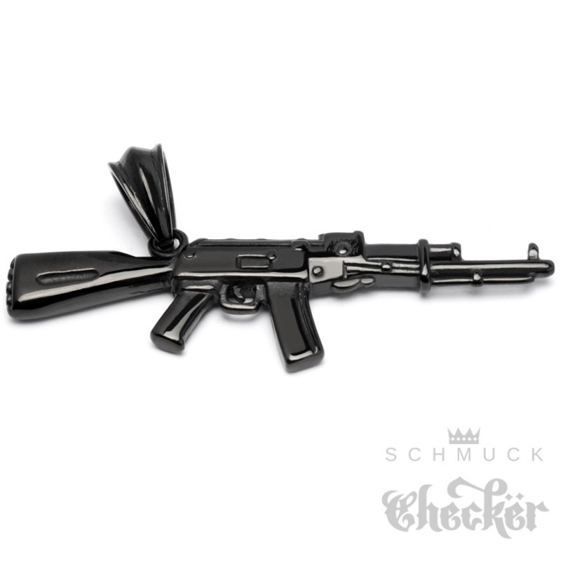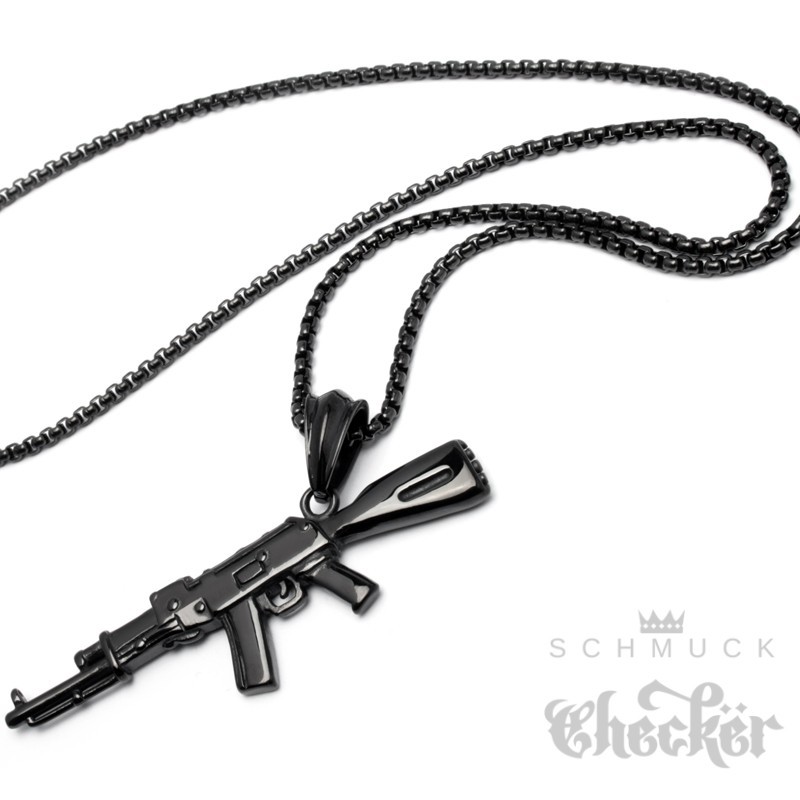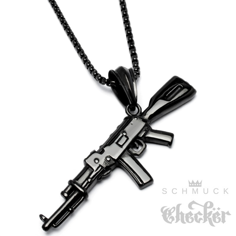 Schwarze Kalaschnikow AK-47 Anhänger aus Edelstahl mit Halskette Maschinengewehr Schmuck