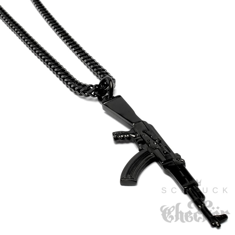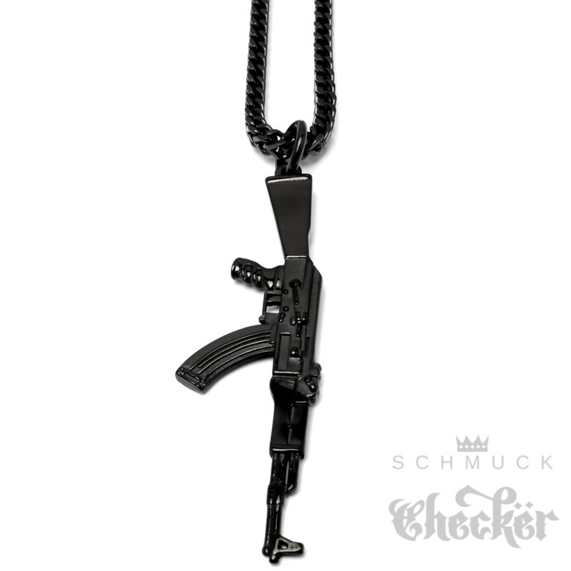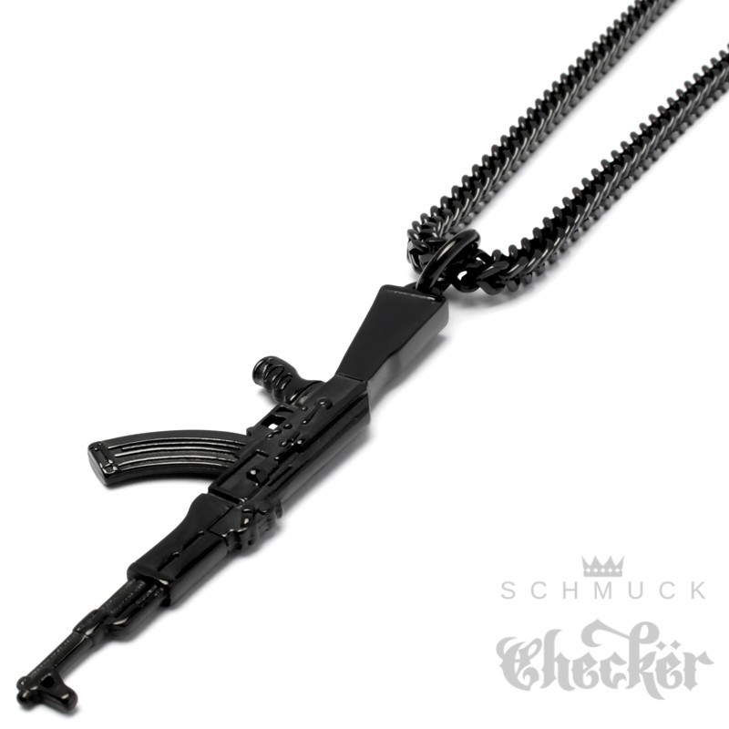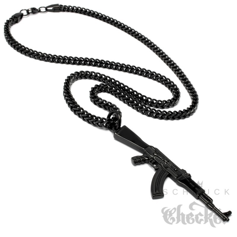 Schwarzer AK-47 Anhänger & Halskette aus Edelstahl Kalaschnikow Gangster Schmuck