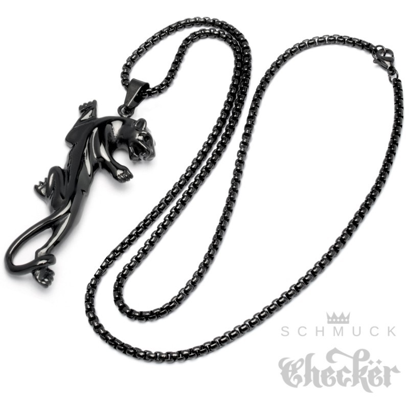 Schwarzer Panther Anhänger aus Edelstahl Puma Jaguar Leopard Halskette Biker Hiphop
