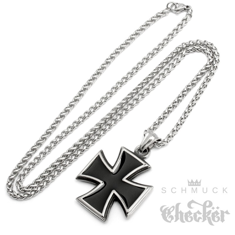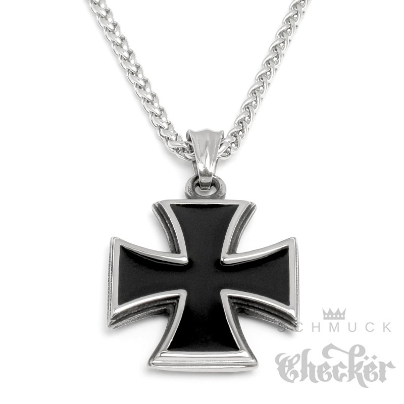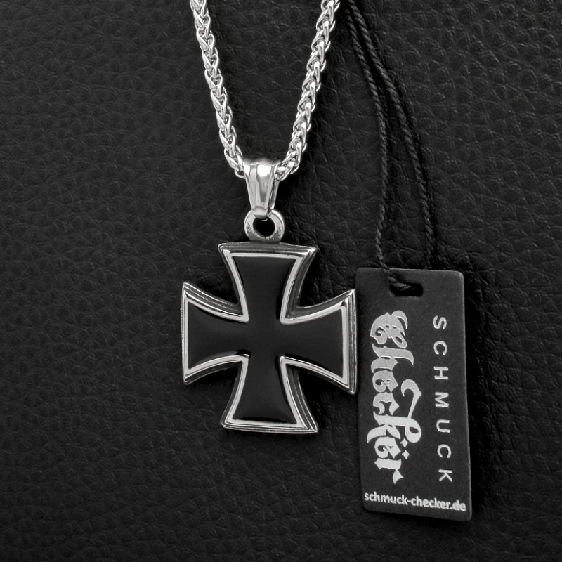Schwarzes Eisernes Kreuz aus 316L Edelstahl Biker Ketten-Anhänger mit Halskette