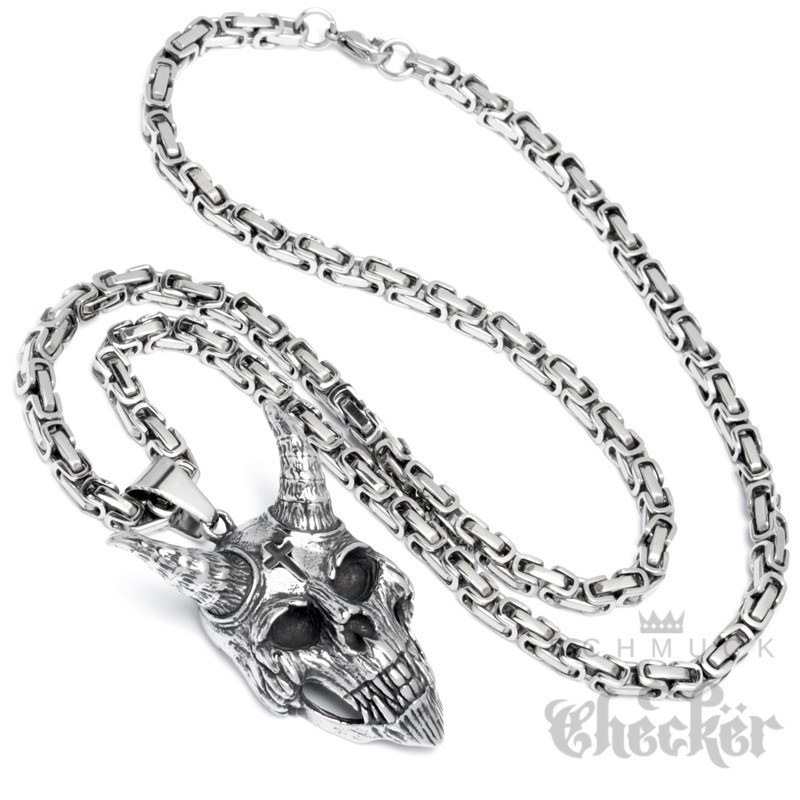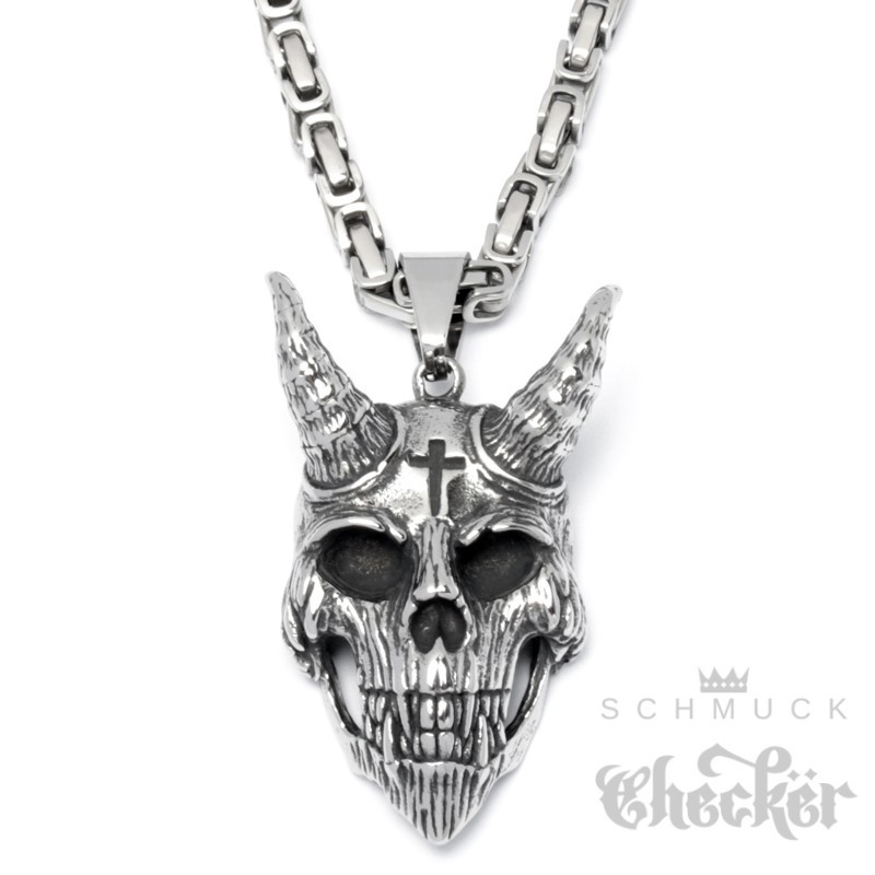 Teufel Anhänger mit Königskette aus Edelstahl Horror Totenkopf Dämon Bikerschmuck