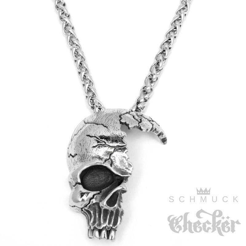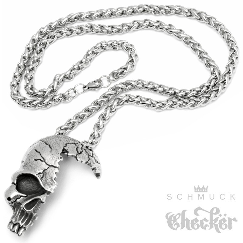 Totenkopf-Anhänger gebrochener Half Skull aus Edelstahl mit passender Halskette