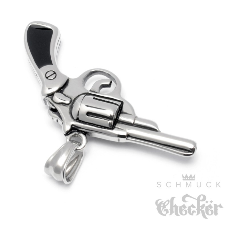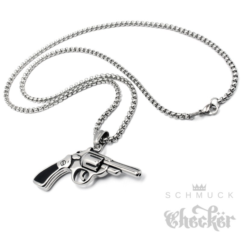 Trommel-Revolver Ketten-Anhänger aus Edelstahl Halskette 3D Cop Cowboy Pistole