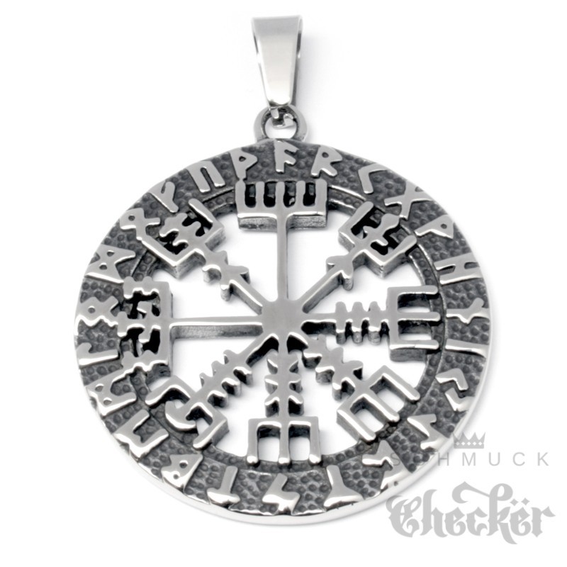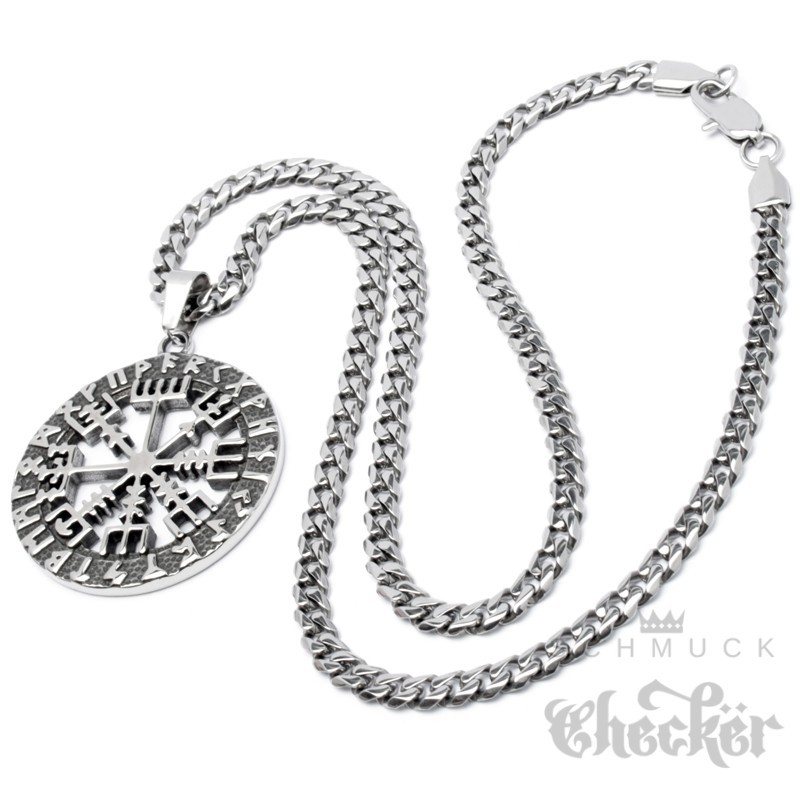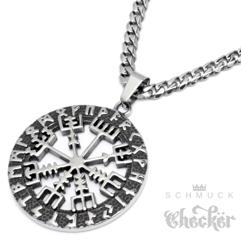 Vegvisir Wikinger-Kompass Anhänger aus Edelstahl Schutz Runen Herren Schmuck Halskette