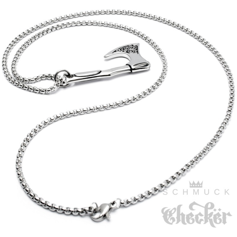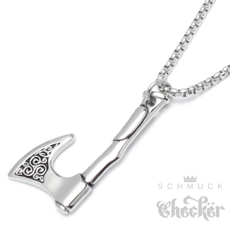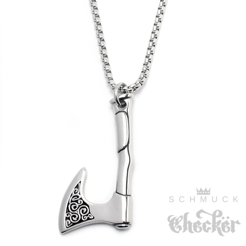 Verzierte Streitaxt aus Edelstahl Wikingerschmuck Triskele Anhänger Halskette silber