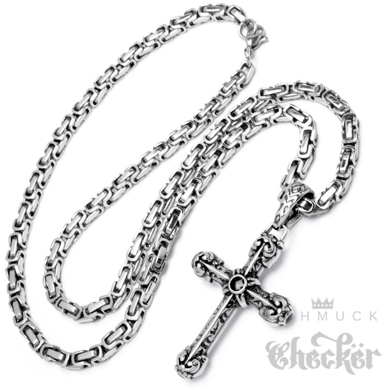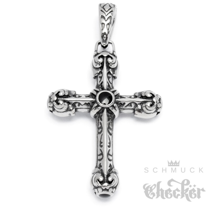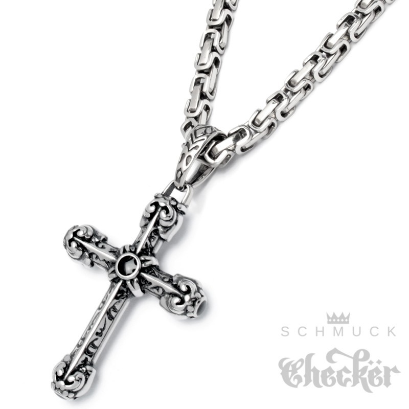 Verzierter Kreuzanhänger aus Edelstahl silber schwarz Königskette Biker Herren