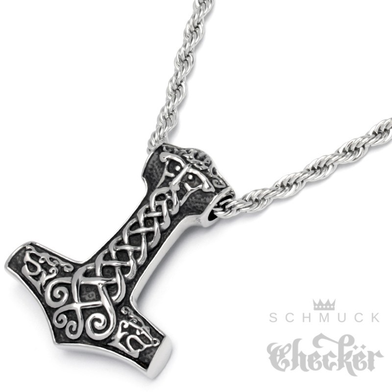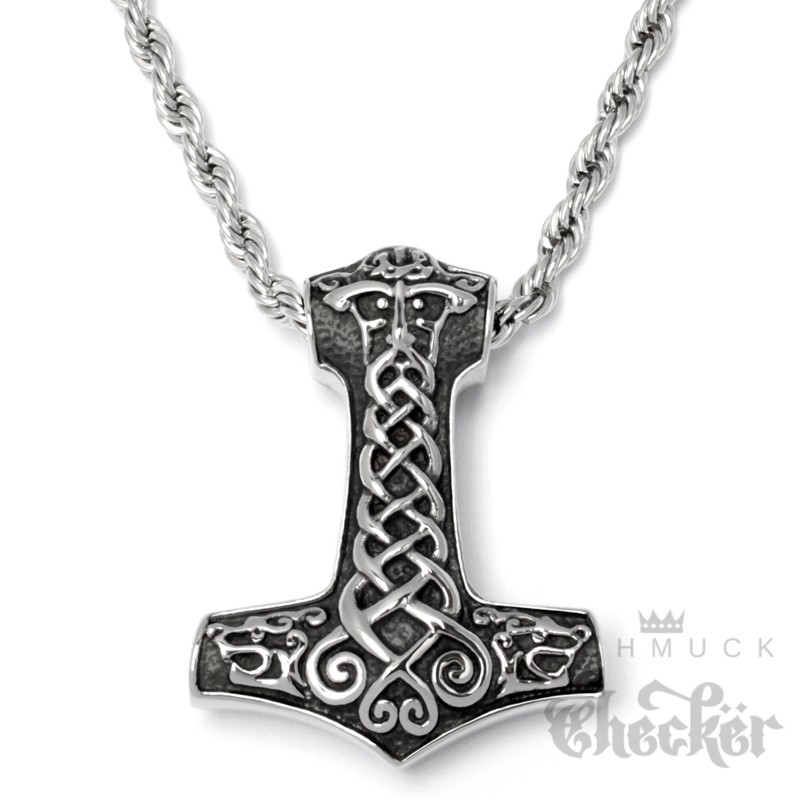 Verzierter Thorhammer Mjölnir mit Gott-Vater Wodan und 2 Wölfen aus Edelstahl Germanen