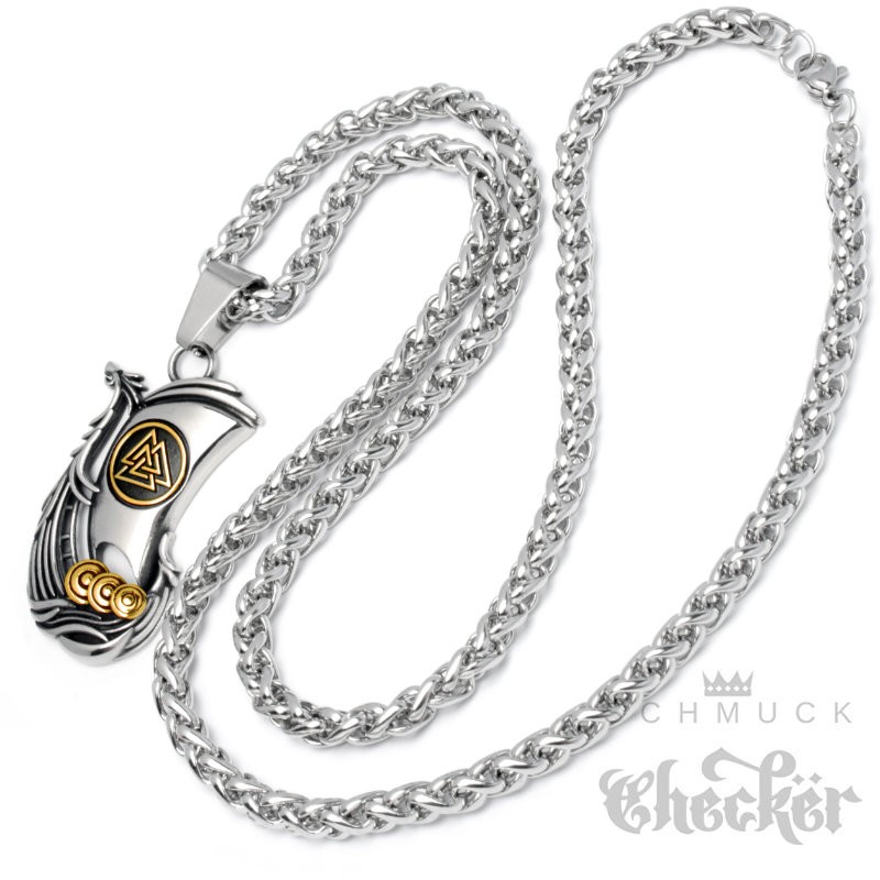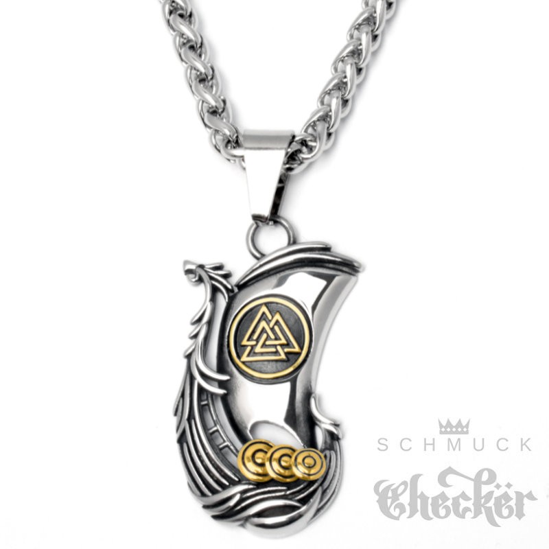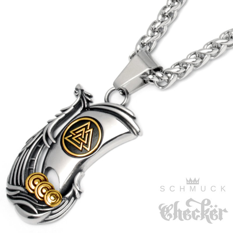 Wikinger-Schiff Kettenanhänger aus Edelstahl silber gold Drachenschiff mit Halskette