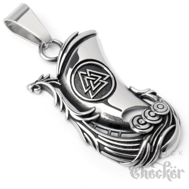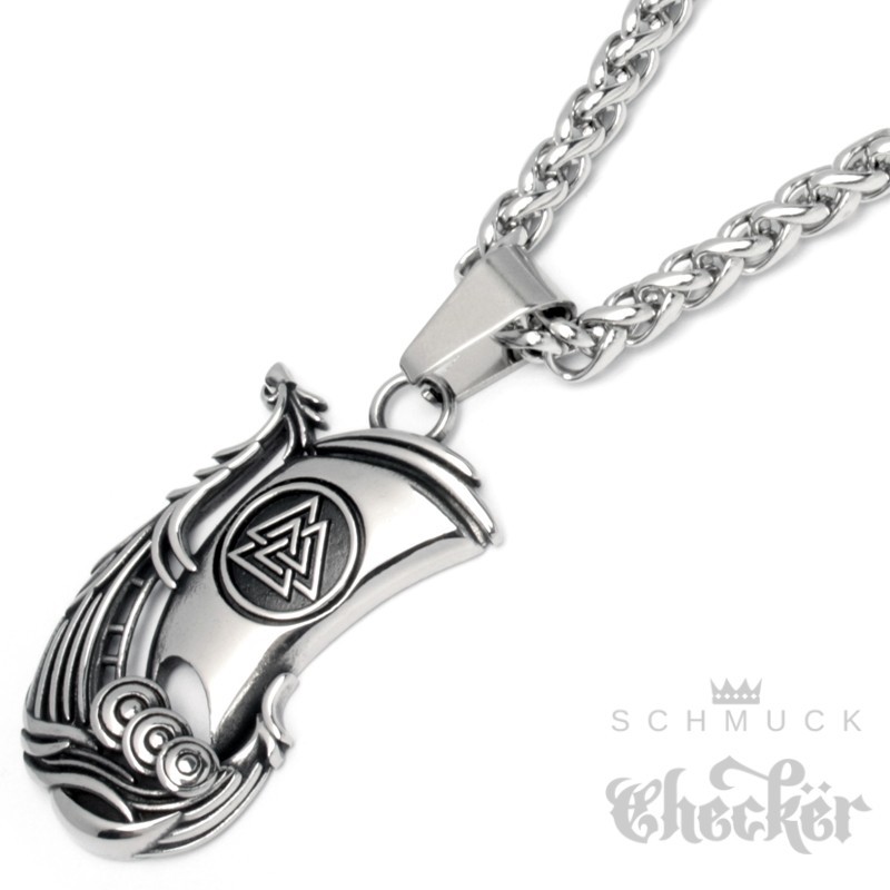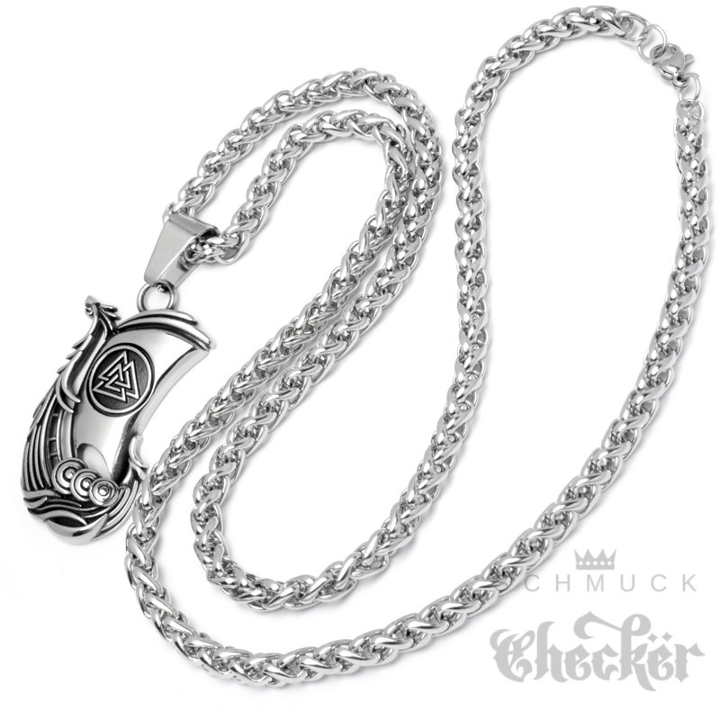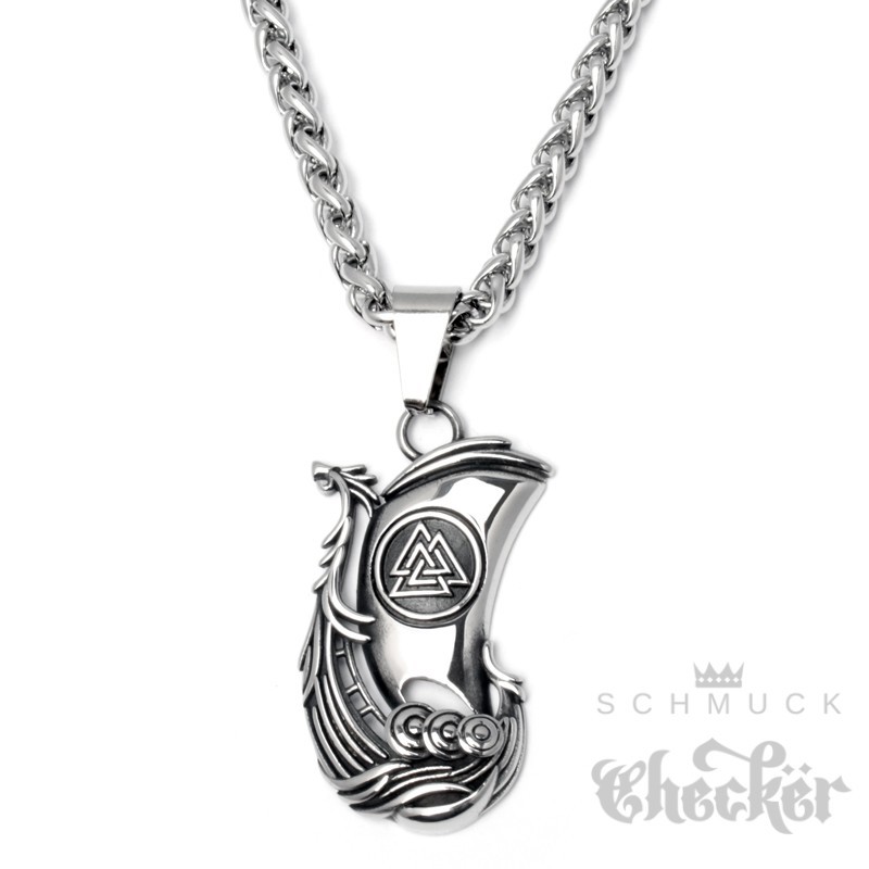 Wikinger-Schiff Kettenanhänger aus Edelstahl Valknut Drachenschiff mit Halskette